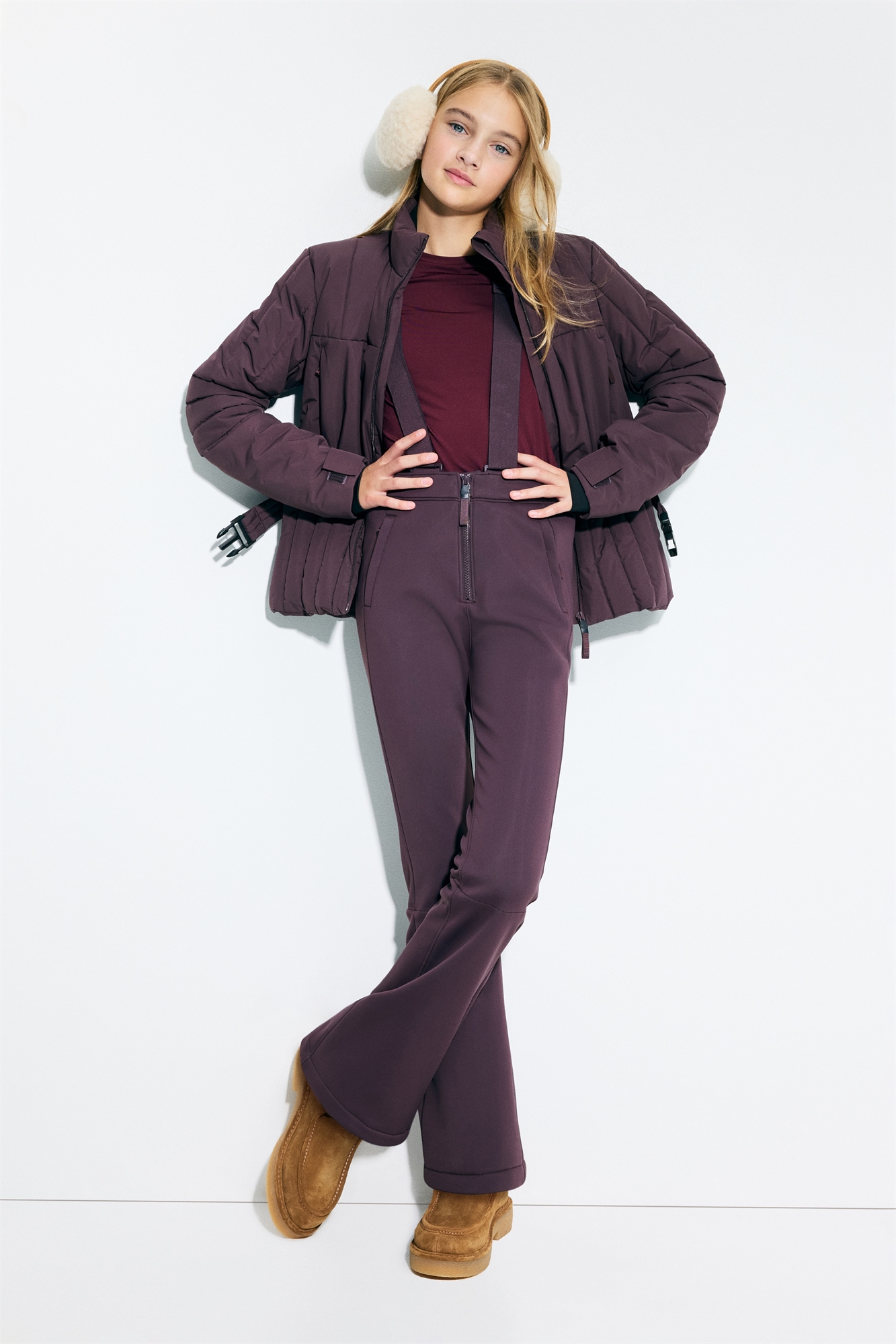 Горнолыжные брюки из дышащей, ветрозащитной и водоотталкивающей функциональной ткани, призванной сохранить вас сухим на снегу и защитить от ветра. Зауженный крой с высокой талией, регулируемые эластичные лямки, которые можно отстегнуть, водонепроницаемая застежка-молния спереди и боковые карманы на молнии для безопасного хранения ценных вещей. Аккуратные расклешенные подолы с застежкой-молнией и встроенными снегозащитными гетрами, которые плотно облегают лыжные ботинки. Мягкий матовый трикотаж внутри, чтобы сохранить тепло.
