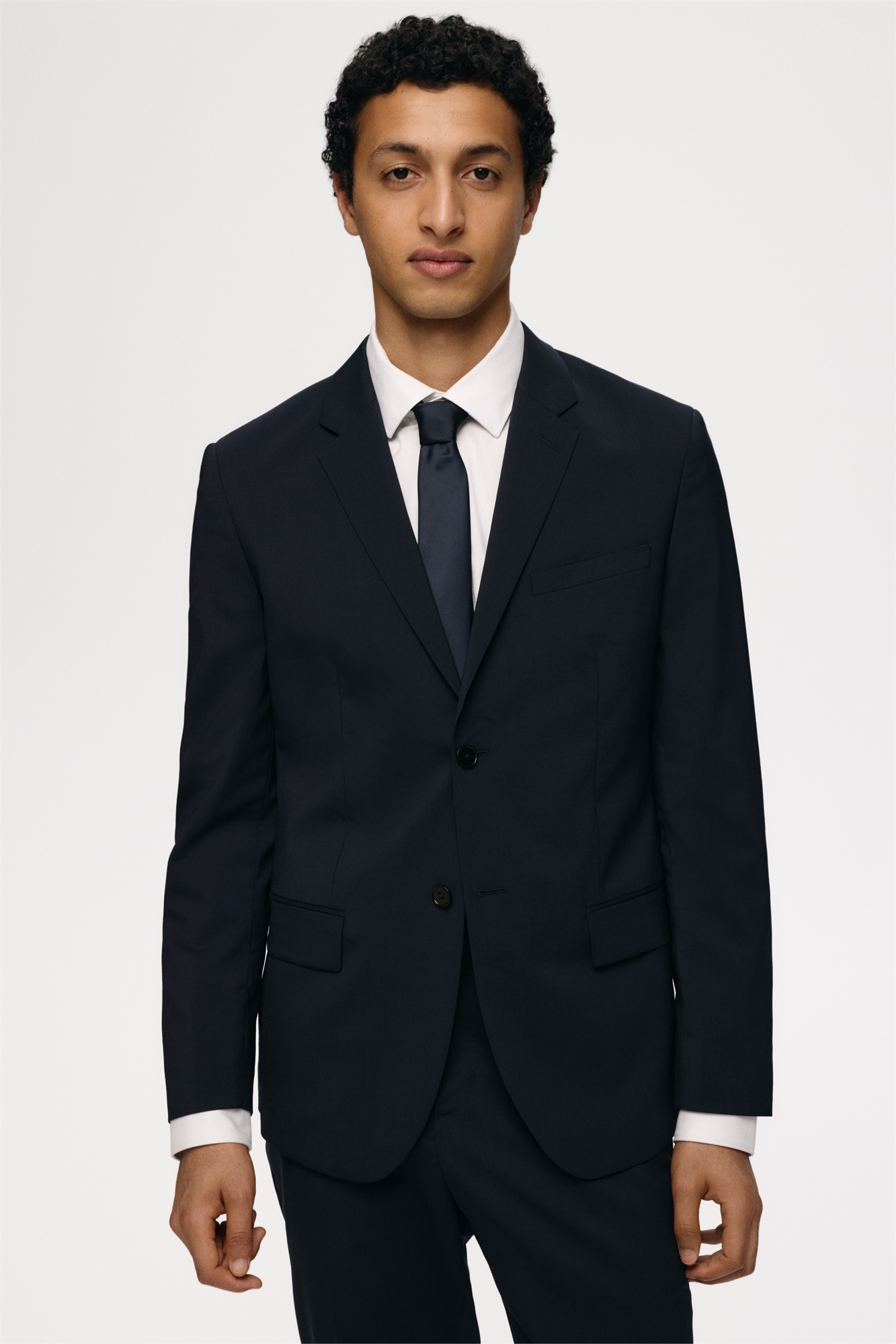 Однобортный пиджак из мягкой шерстяной ткани итальянского производства. Узкие лацканы с вырезом, декоративная петля для пуговицы, нагрудный карман, накладные передние карманы и три внутренних кармана. Две пуговицы спереди, декоративные пуговицы на манжетах и двойной задний клапан. Зауженный крой, облегающий контуры тела и создающий приталенный силуэт. На подкладке.