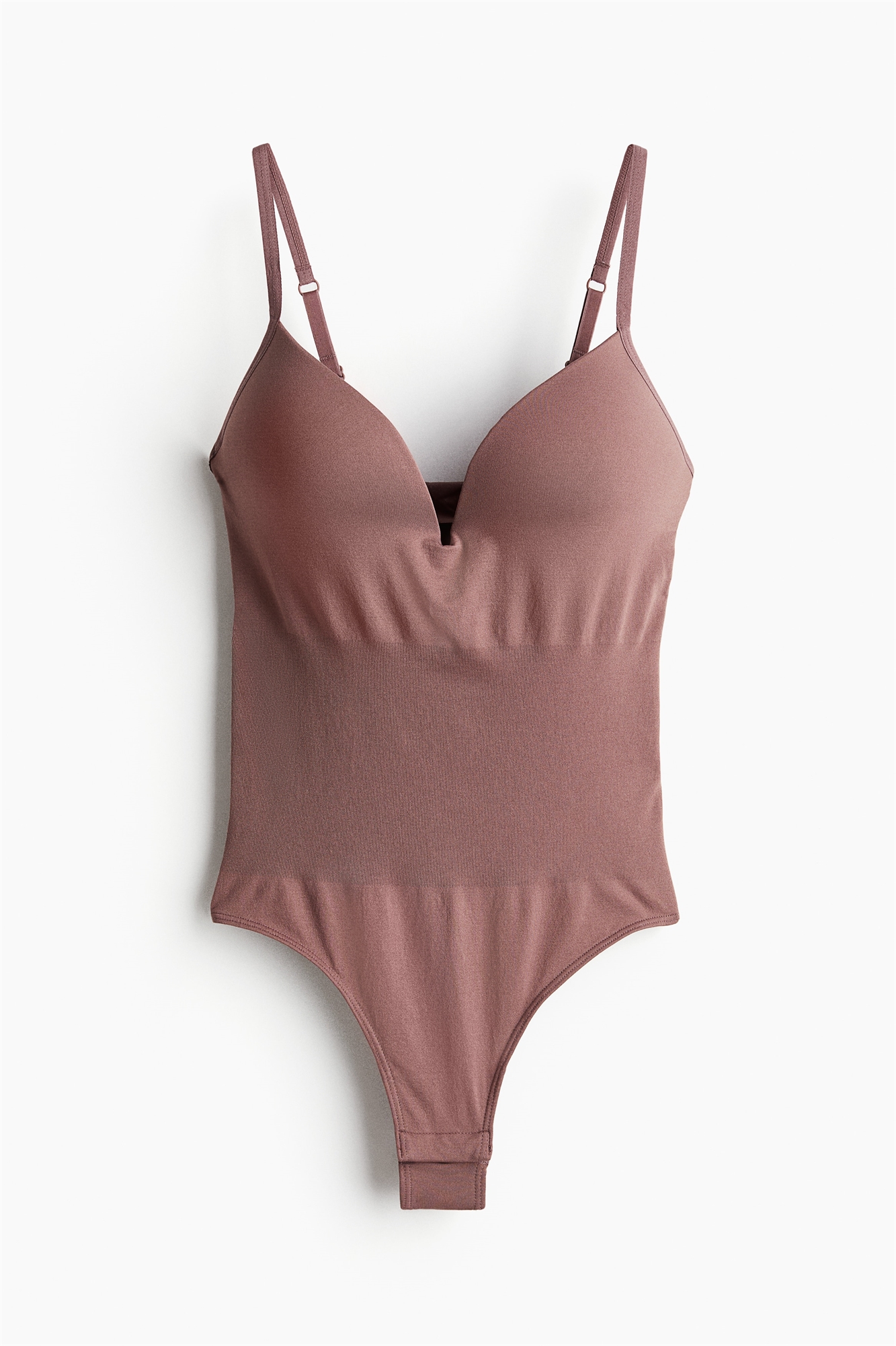 Бесшовное боди стринги с легким формирующим эффектом на талии и мягкими чашечками для увеличения бюста и декольте. Регулируемые бретели и ластовица на подкладке с потайными кнопками. Боди с минимальным количеством швов для бесшовного и комфортного ощущения на коже.
