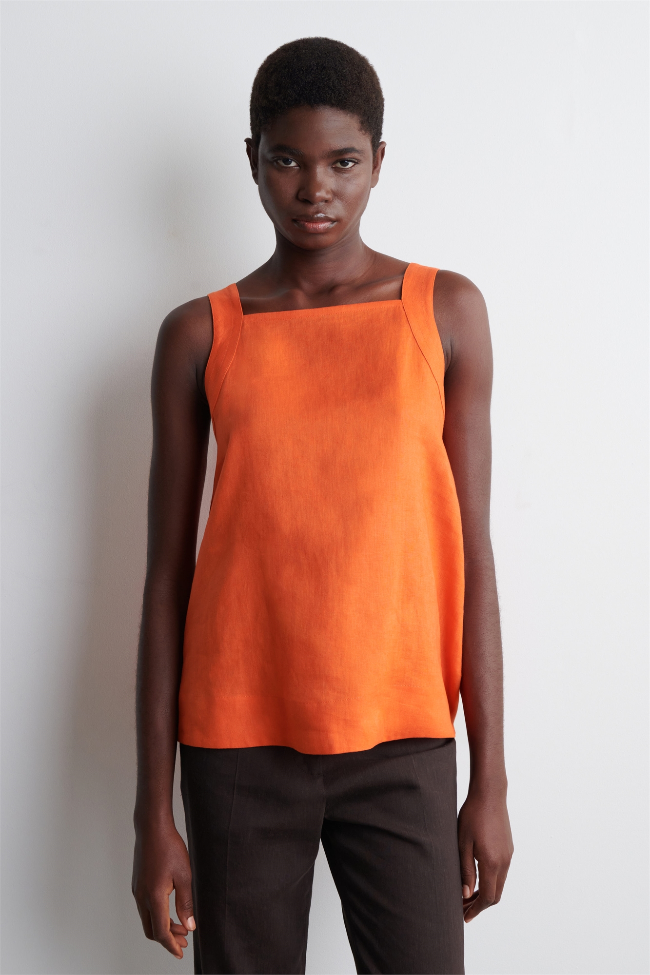 Этот легкий топ - естественный выбор для летних дней. Созданный из натурального охлаждающего льна, он имеет квадратный вырез без рукавов и широкие бретели, которые складываются в аккуратный бант на открытой спине. Носите его с подходящими кюлотами. Regular fit Переработанный лен изготавливается из отходов пряжи или раскроя ткани в процессе производства. Отходы механически перерабатываются и прядутся в новую пряжу Состав: 70% лен, 30% переработанный лен. Без учета отделки / Машинная стирка Длина по спинке для размера EU 36 составляет 38,5 см / Модель носит размер EU 36