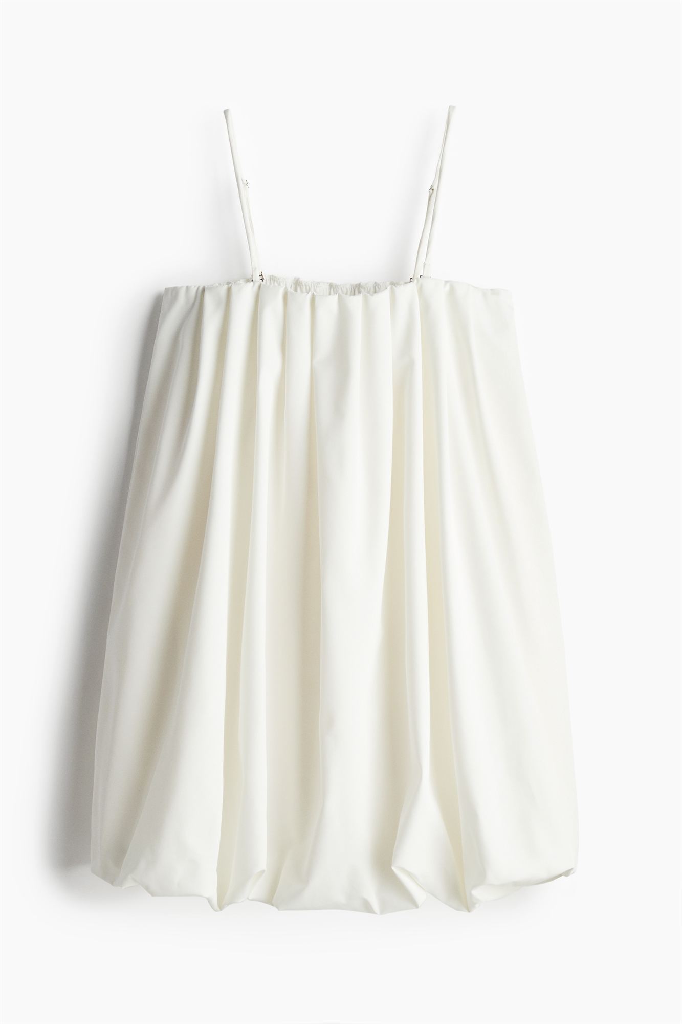 Короткое платье из тканого материала со съемными, регулируемыми бретелями-спагетти и прямым кроем в верхней части со складками спереди и закрытой резинкой сзади. Объемный подол в виде пузыря придает силуэту пышность. На подкладке.