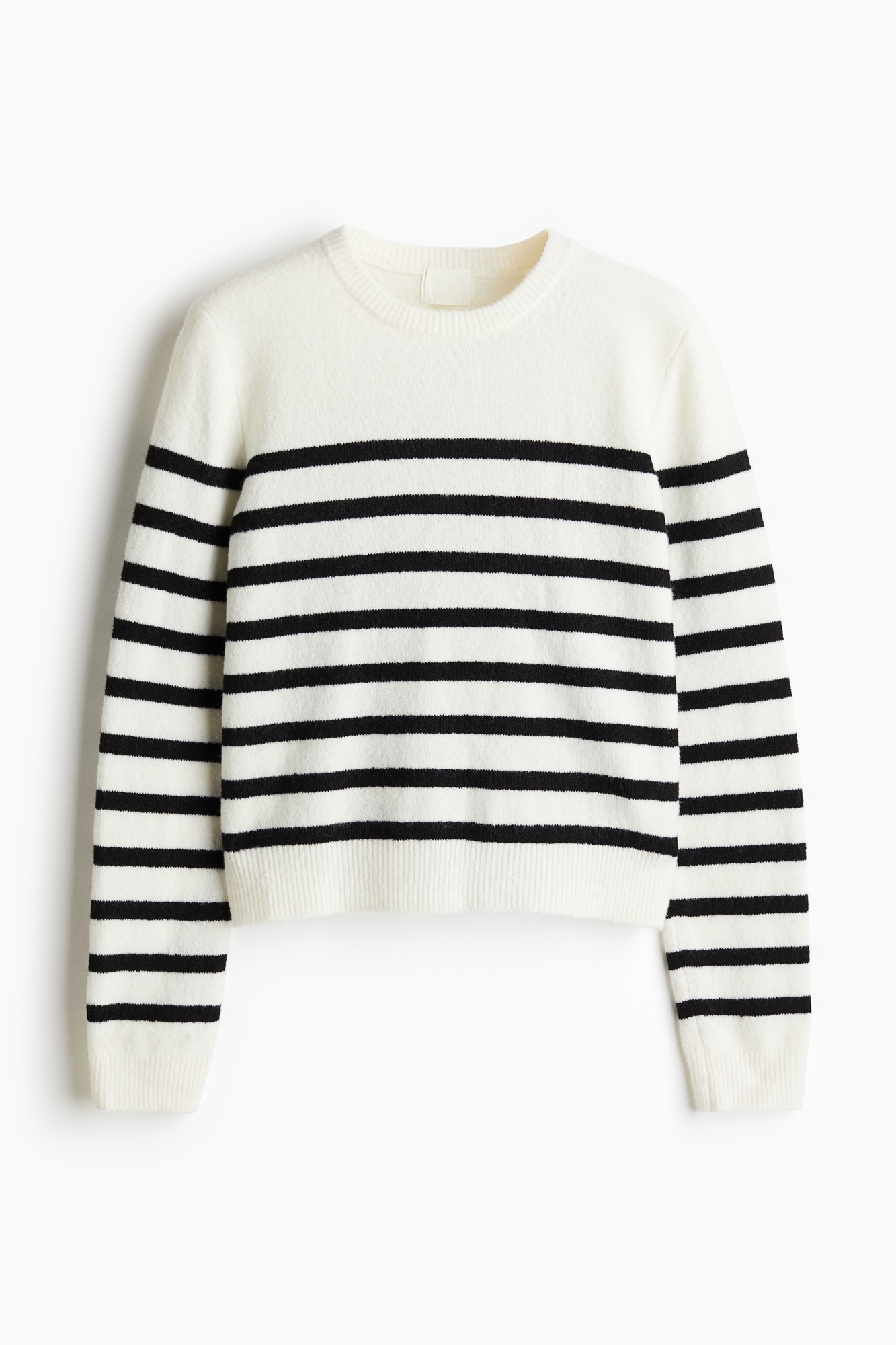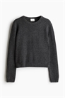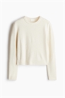 Джемпер из мягкого трикотажа с круглым вырезом, слегка спущенными плечами и длинными рукавами. Окантовка вокруг выреза, на манжетах и подоле.
