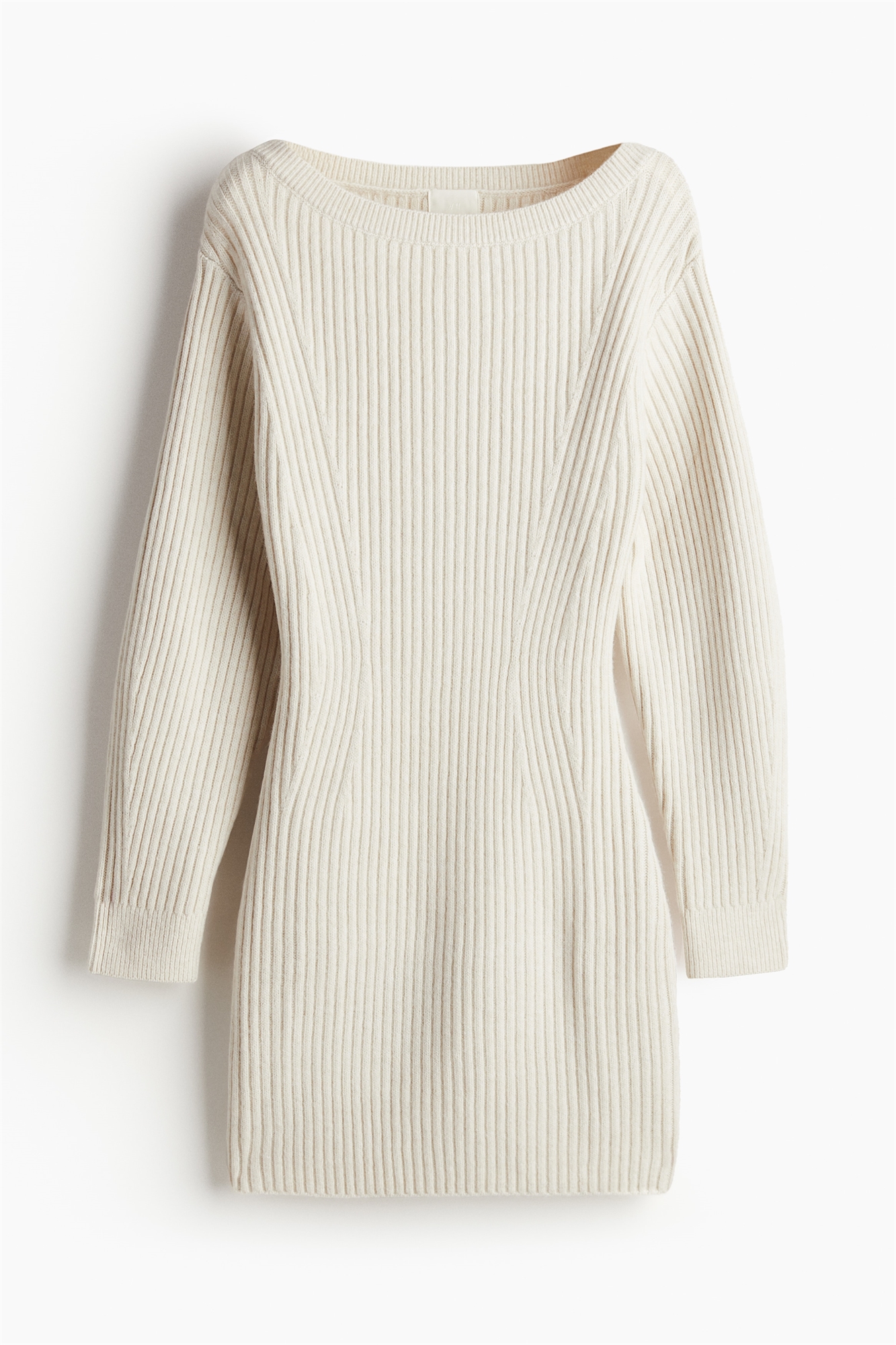 Платье с вырезом лодочкой из трикотажа в рубчик