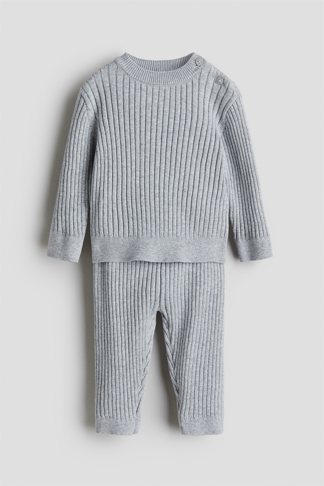 Комплект из топа и брюк Henley из мягкого ребристого хлопкового трикотажа. Топ с круглым вырезом в рубчик, застежкой на пуговицах, спущенными плечами и тесемками на манжетах и подоле. Брюки с эластичной утягивающейся талией и тесемками по подолу.