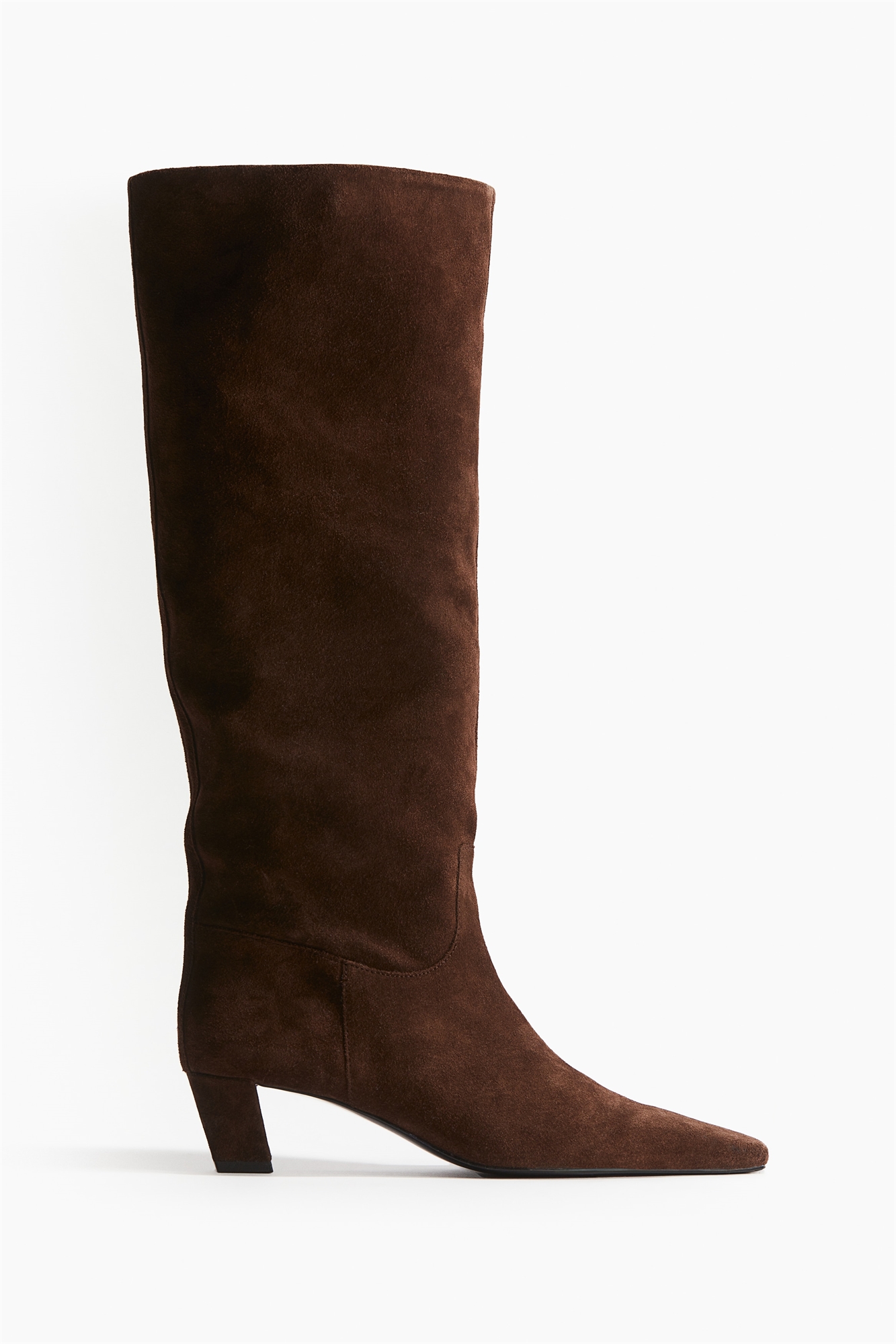 Сапоги из мягкой кожи с оттопыренными носками, высокими голенищами и изогнутыми каблуками.