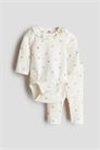 Комплект из комбинезона и брюк из мягкого хлопкового джерси. Боди с длинными рукавами, круглым вырезом и кнопками на ластовице для удобства переодевания. Брюки с мягкой эластичной резинкой на талии.