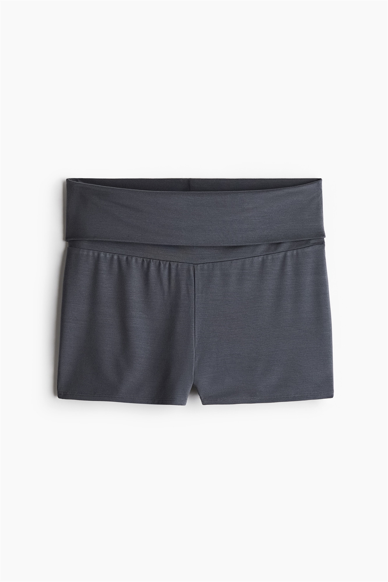 Облегающие мини-шорты из мягкого вискозного джерси с широким откидным поясом.
