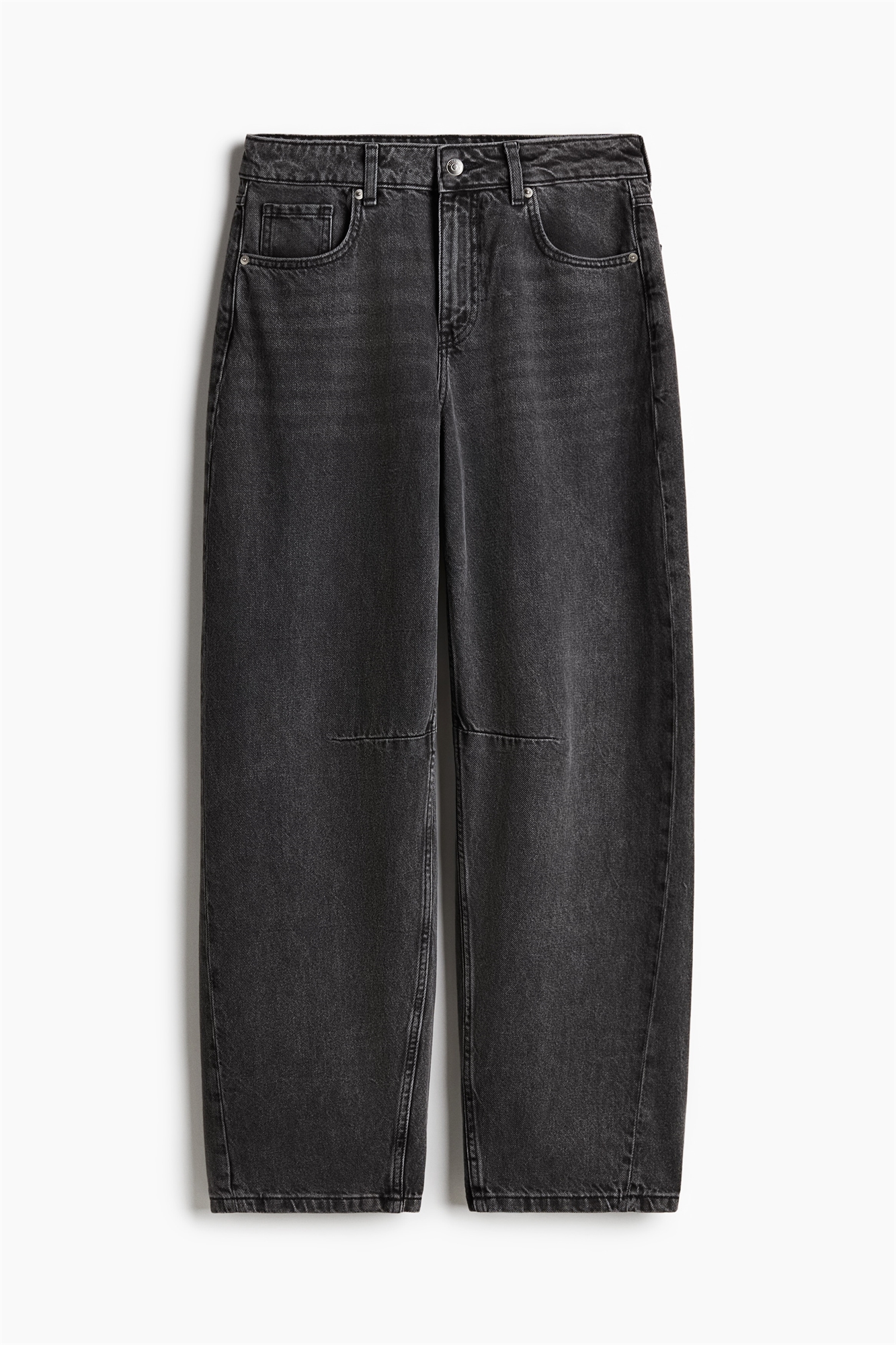 Джинсы с 5 карманами из жесткого хлопкового денима, который сначала кажется твердым, но затем смягчается и ослабевает по мере носки. Изогнутая, объемная штанина со свободной посадкой от бедра до бедра, которая затем сужается к подолу. Регулярная талия с ширинкой на молнии и пуговице. Обычная длина, рассчитанная на то, чтобы доходить до верхней части стопы с минимальной или нулевой укладкой. Дизайн, который переходит от элегантного и шикарного к спортивному и крутому.