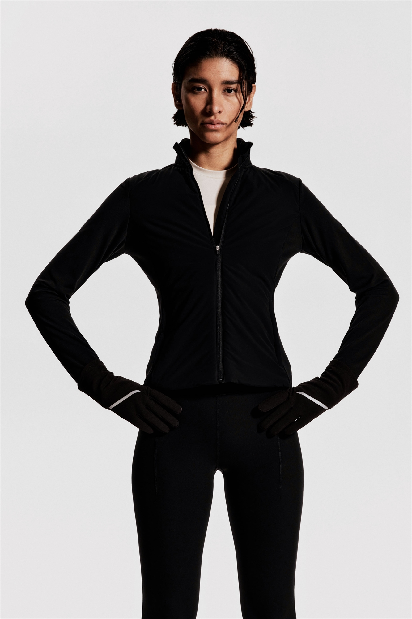 Спортивная куртка из нейлона, которую можно носить как саму по себе, так и в качестве утепляющего среднего слоя. Куртка имеет легкую подкладку спереди и сзади. Воротник-стойка, застежка-молния спереди, удлиненные рукава с отверстиями для больших пальцев, прорезные передние карманы на потайной молнии. На подкладке.