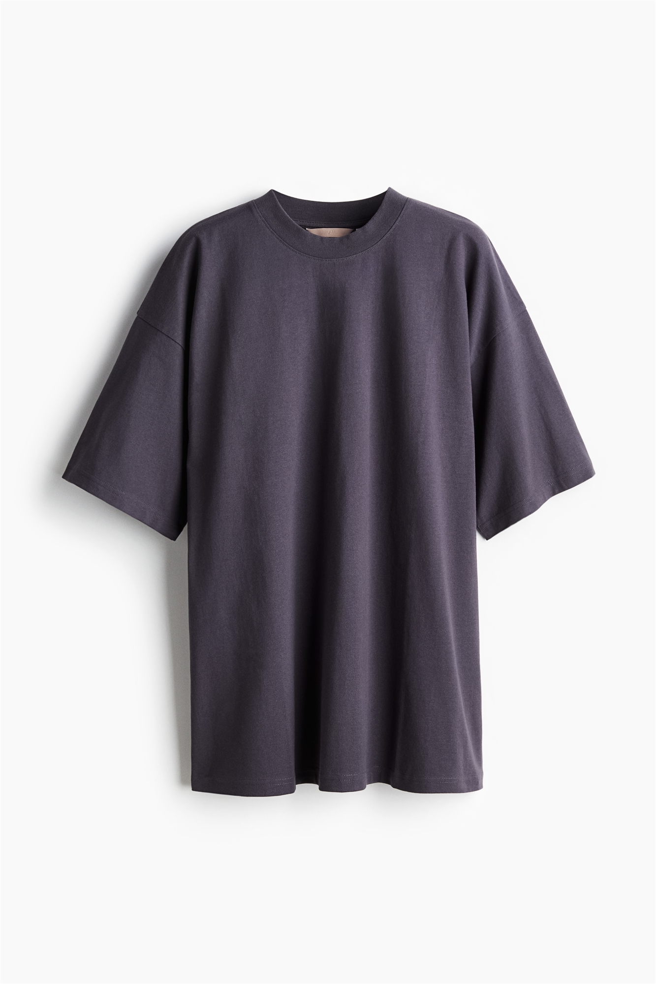 Длинная футболка свободного кроя из мягкого хлопкового джерси с ребристой отделкой по вырезу горловины и низко опущенными плечами.