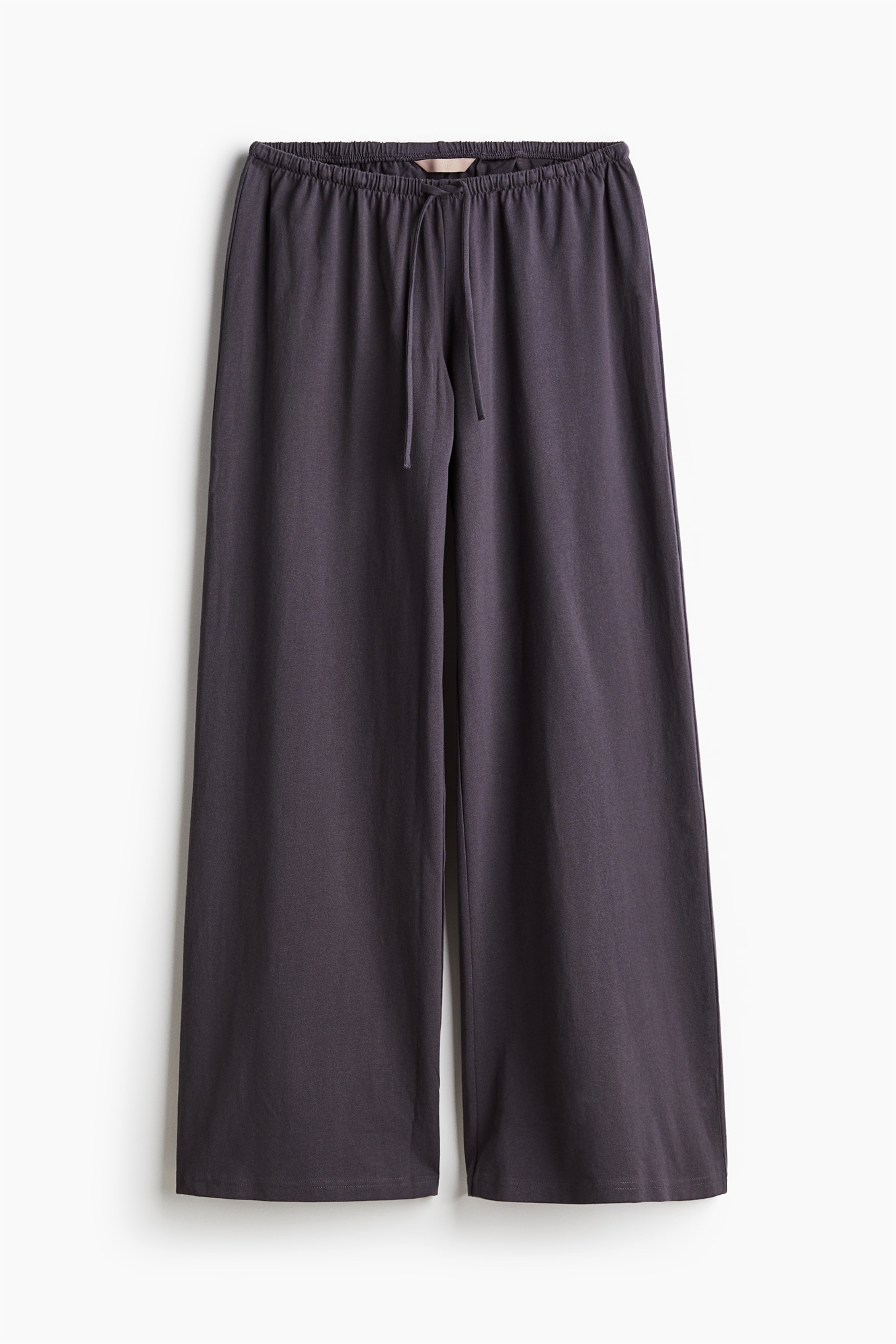 Свободные брюки из мягкого хлопкового джерси с широкими штанинами и заниженной эластичной талией с узким шнурком.