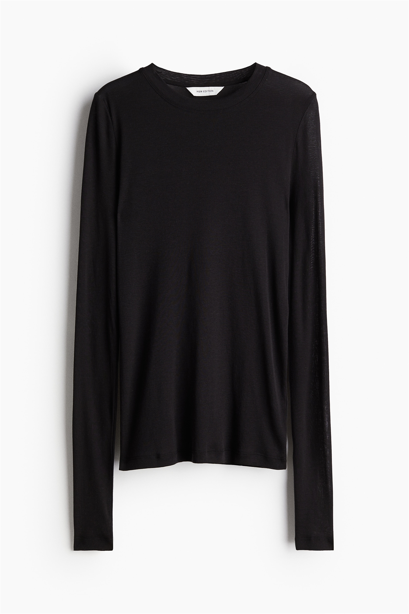Облегающий топ из мягкого хлопкового джерси пима с круглым вырезом и удлиненными рукавами.