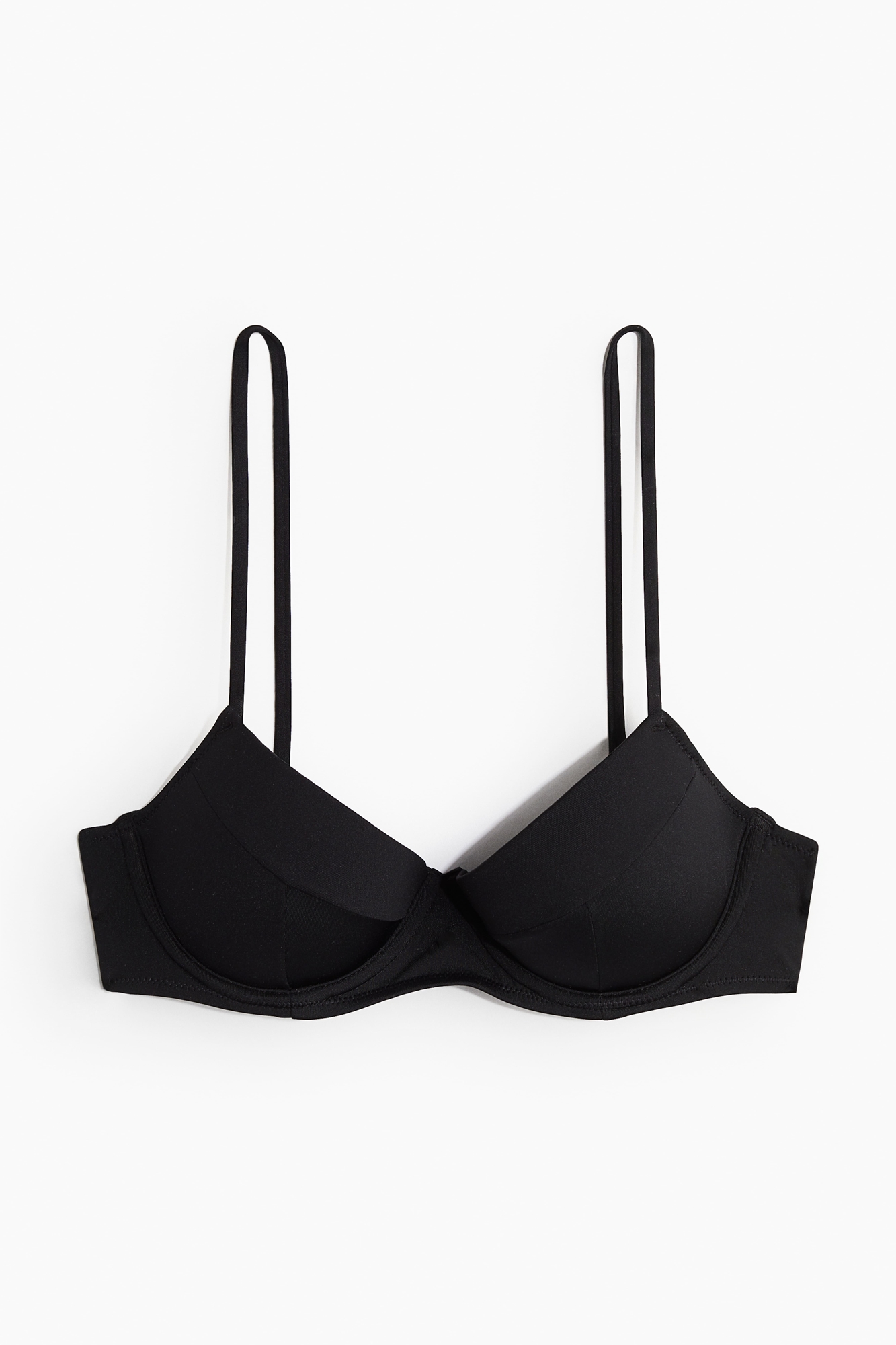 Бикини на подкладке с регулируемыми бретелями и чашечками с плотной подкладкой, которые максимально увеличивают бюст и создают более глубокое декольте. Регулируемая застежка-крючок сзади.
