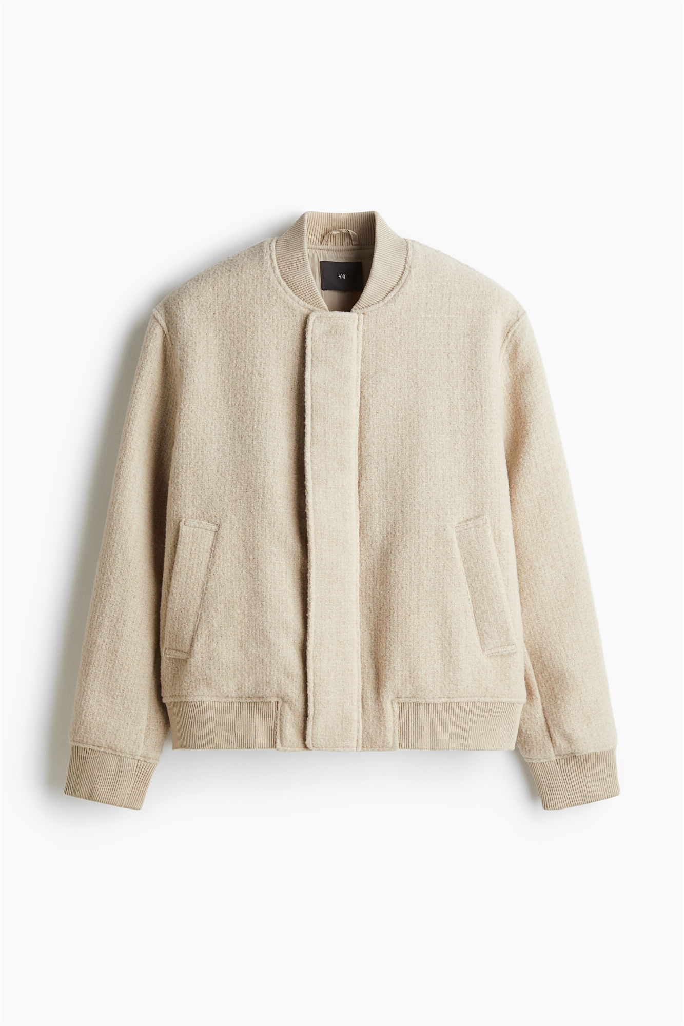 Куртка-бомбер из мягкого шерстяного микса с ребристым воротником-стойкой, передом на молнии и ветрозащитным клапаном с кнопками спереди. Боковые карманы и внутренний карман. Ребристые манжеты и подол. Регулярный крой для комфортной носки и классического силуэта. На подкладке.