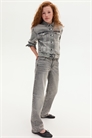 Джинсы с 5 карманами из эластичного хлопкового денима с прямыми ногами. Заниженная талия, ширинка на молнии, пуговица и регулируемая резинка.