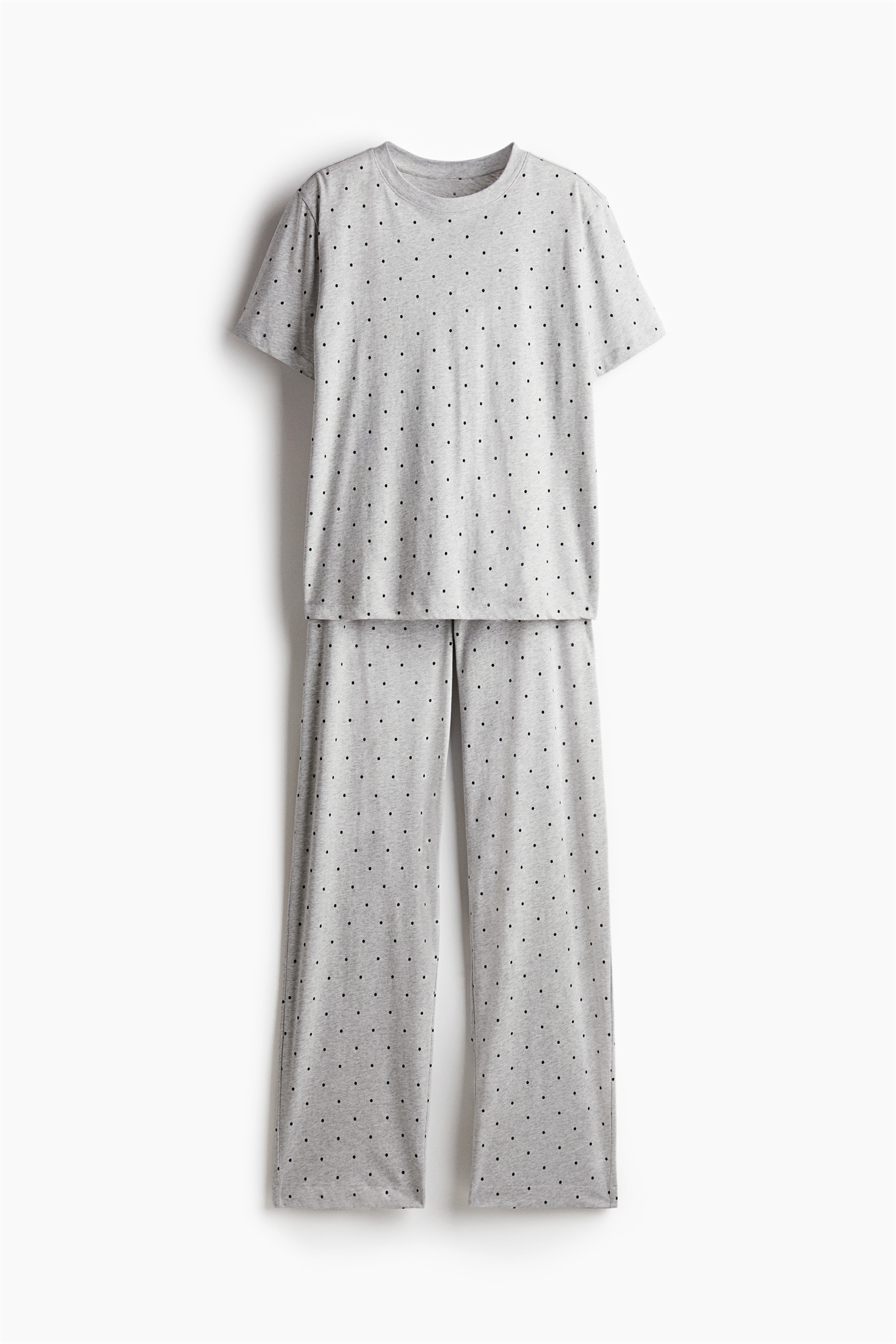 Пижама с верхом и низом из мягкого хлопкового джерси. Верхняя часть с круглым вырезом с ребристой отделкой и короткими рукавами. Нижние штанишки с эластичной резинкой на талии.