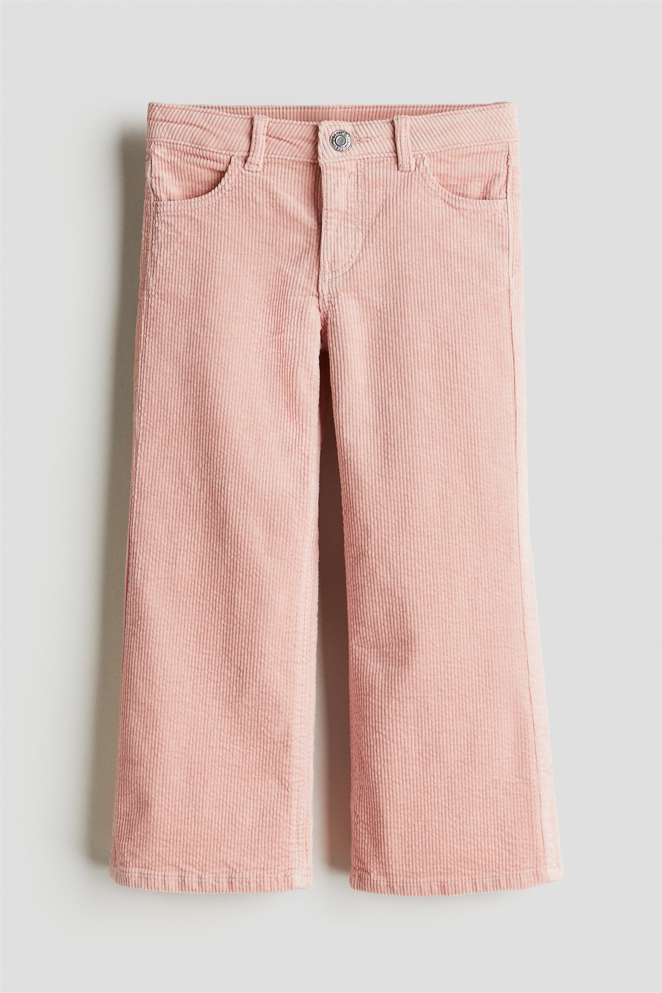 Брюки из эластичного хлопкового вельвета с регулируемым эластичным поясом, ширинкой на молнии и застежкой на кнопки, передними и задними карманами и прямыми широкими ногами.