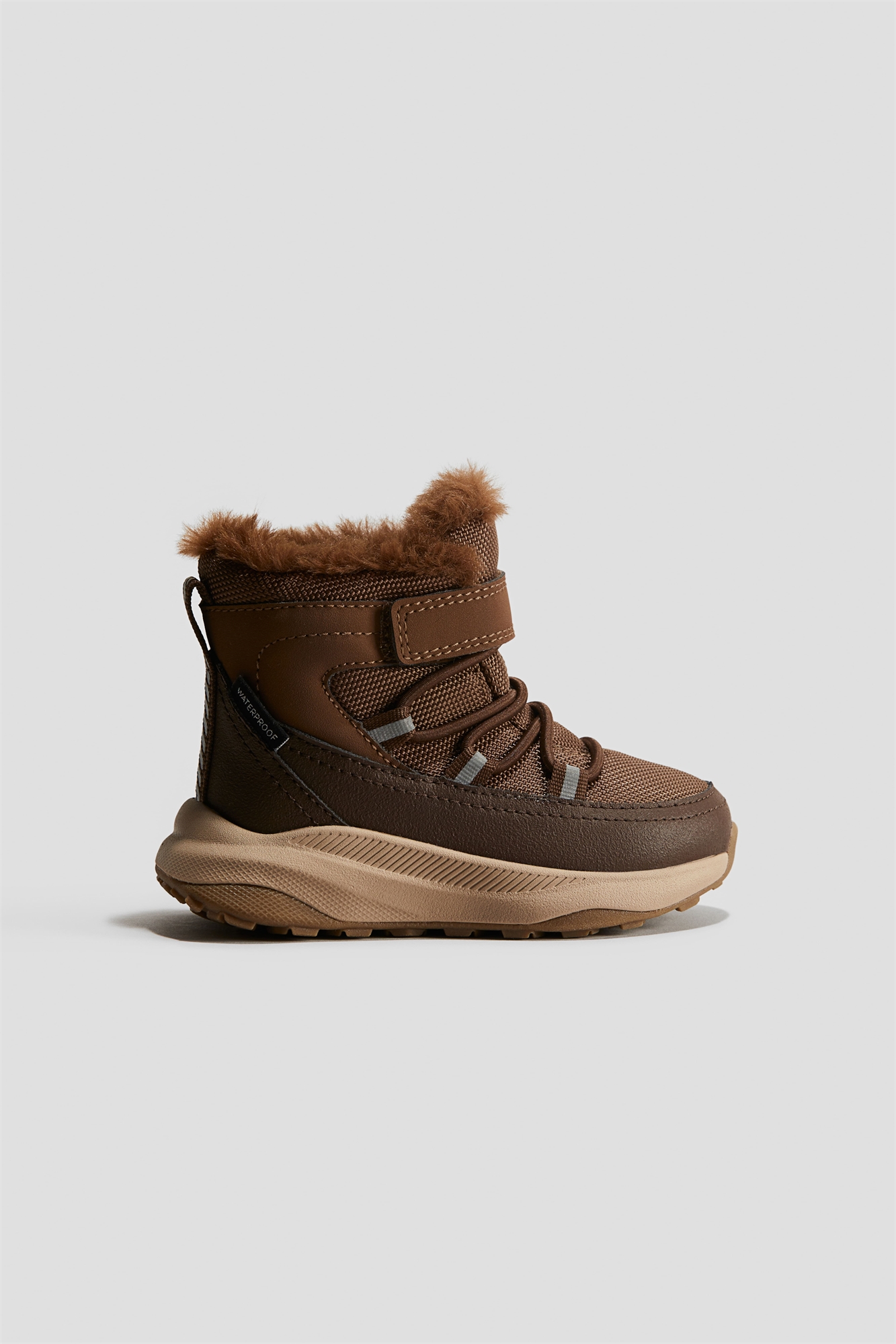 Утепленные кроссовки с водонепроницаемой мембраной для защиты ног от влаги. Застежка на крючок и петлю спереди, эластичная шнуровка и светоотражающие детали. Мягкая, ворсистая подкладка и стелька из технической пены Cellfit™ для дополнительного комфорта. Узорчатая подошва. Высота подошвы 2,6 см.