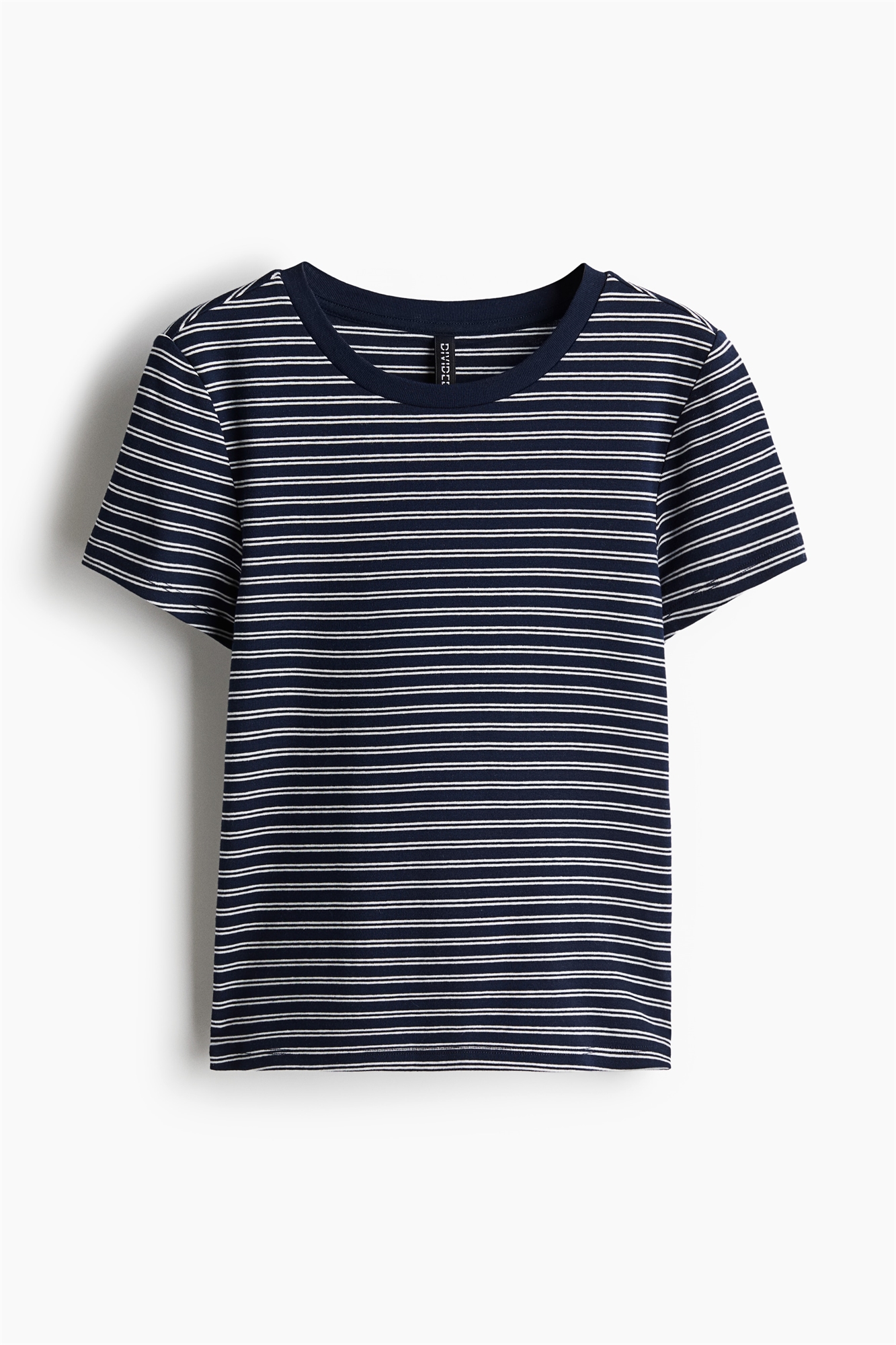 Короткая приталенная футболка из ребристого хлопкового джерси с набивным рисунком и швами "флэтлок" для большего комфорта.