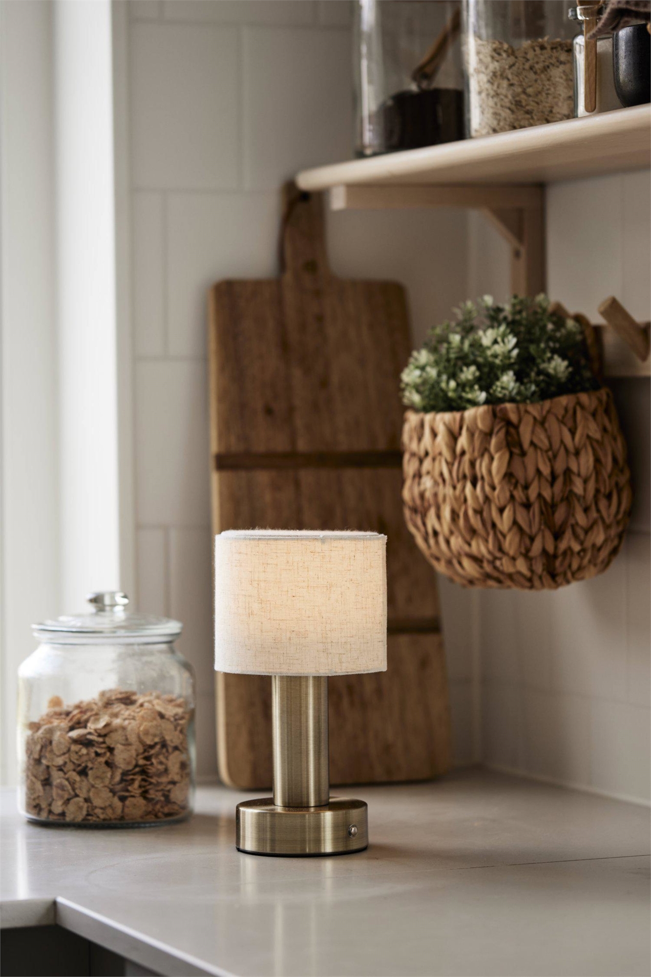 Перезаряжаемая настольная лампа с тремя предустановленными цветовыми температурами 2700-4000-6500K. Основание лампы выполнено из лакированного металла. Абажур изготовлен из льна. Лампа работает от литий-ионного аккумулятора, который можно заряжать через порт USB-C. Кабель для зарядки (1 м) входит в комплект поставки. Источник света не подлежит замене. Световой поток варьируется между 20 и 40 люменами. Если аккумулятор разряжен, то для подзарядки лампы требуется около 4 часов. При минимальном уровне яркости лампа может светить до 8 часов. Включите или выключите фонарь, нажав и удерживая кнопку ON/OFF в течение 3 секунд. Циклы зарядки - 400 раз. Размер, Φ13 x 24 см.