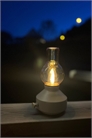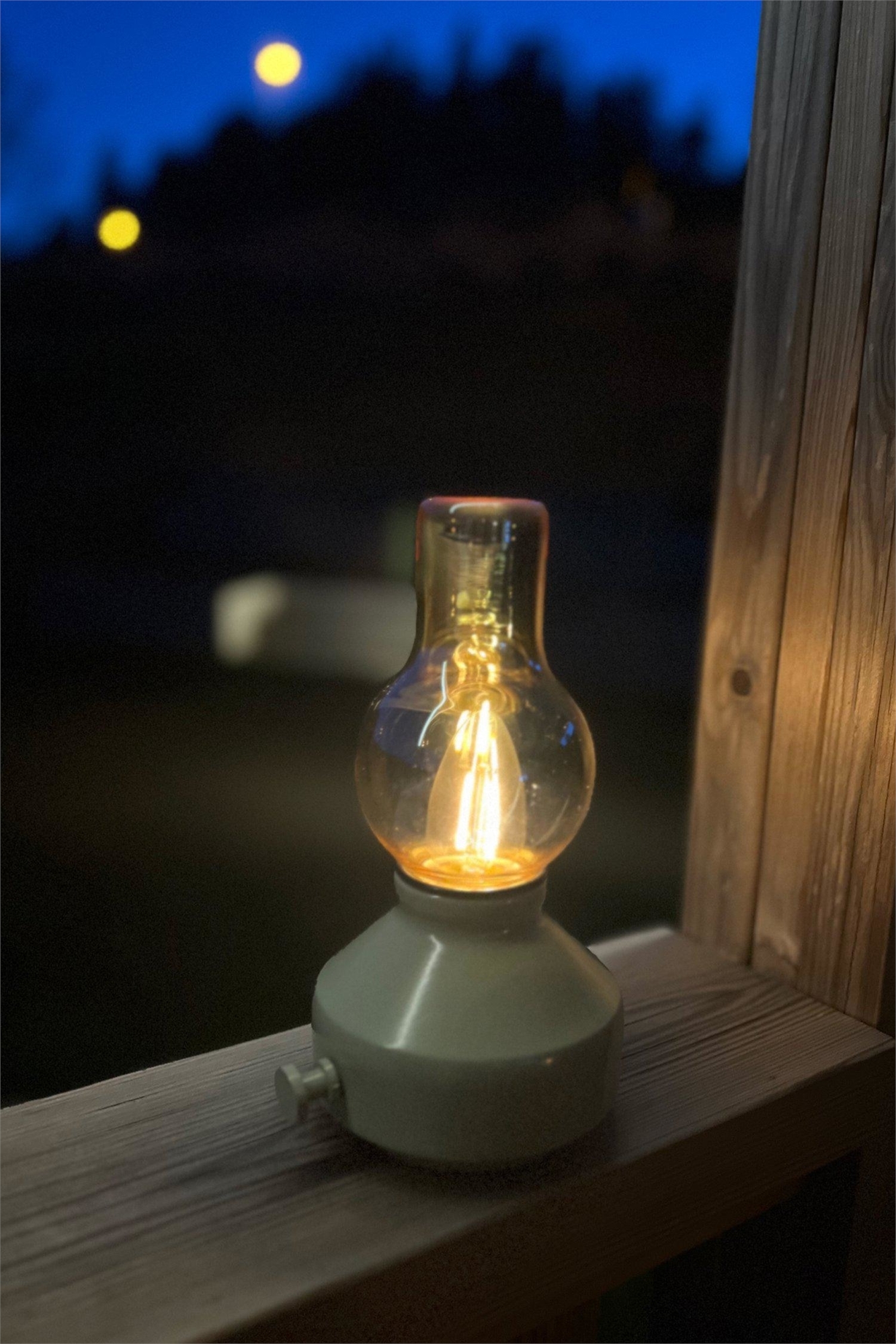 Перезаряжаемая настольная лампа с плавной регулировкой яркости, выполненная в классическом стиле, напоминающем старую масляную лампу, но в новом и современном винтажном стиле. Лампа изготовлена из металла и стекла и питается от литий-ионного аккумулятора, который можно заряжать через разъем USB-C. Кабель для зарядки (1 м), разумеется, входит в комплект. Источник света не подлежит замене. Световой поток варьируется от 20 до 40 люмен в зависимости от уровня яркости и обеспечивает приятную цветовую температуру около 2000 Кельвинов. Если аккумулятор разряжен, то для подзарядки лампы требуется около 4 часов. На самом низком уровне яркости лампа может светить до 8 часов. Размеры, Φ 11x21 см. Для использования вне помещений, IP44