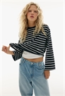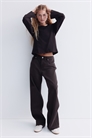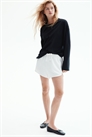 Топ в стиле бокс из мягкого хлопкового джерси с круглым вырезом с ребристой отделкой. Свободный крой, спущенные плечи и длинные рукава.