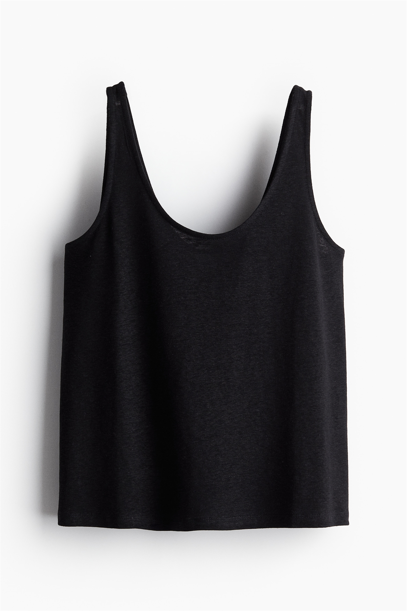 Майка из воздушной смеси льна и вискозы. Модель со свободным кроем, широкими бретелями и U-образным вырезом с обеих сторон.