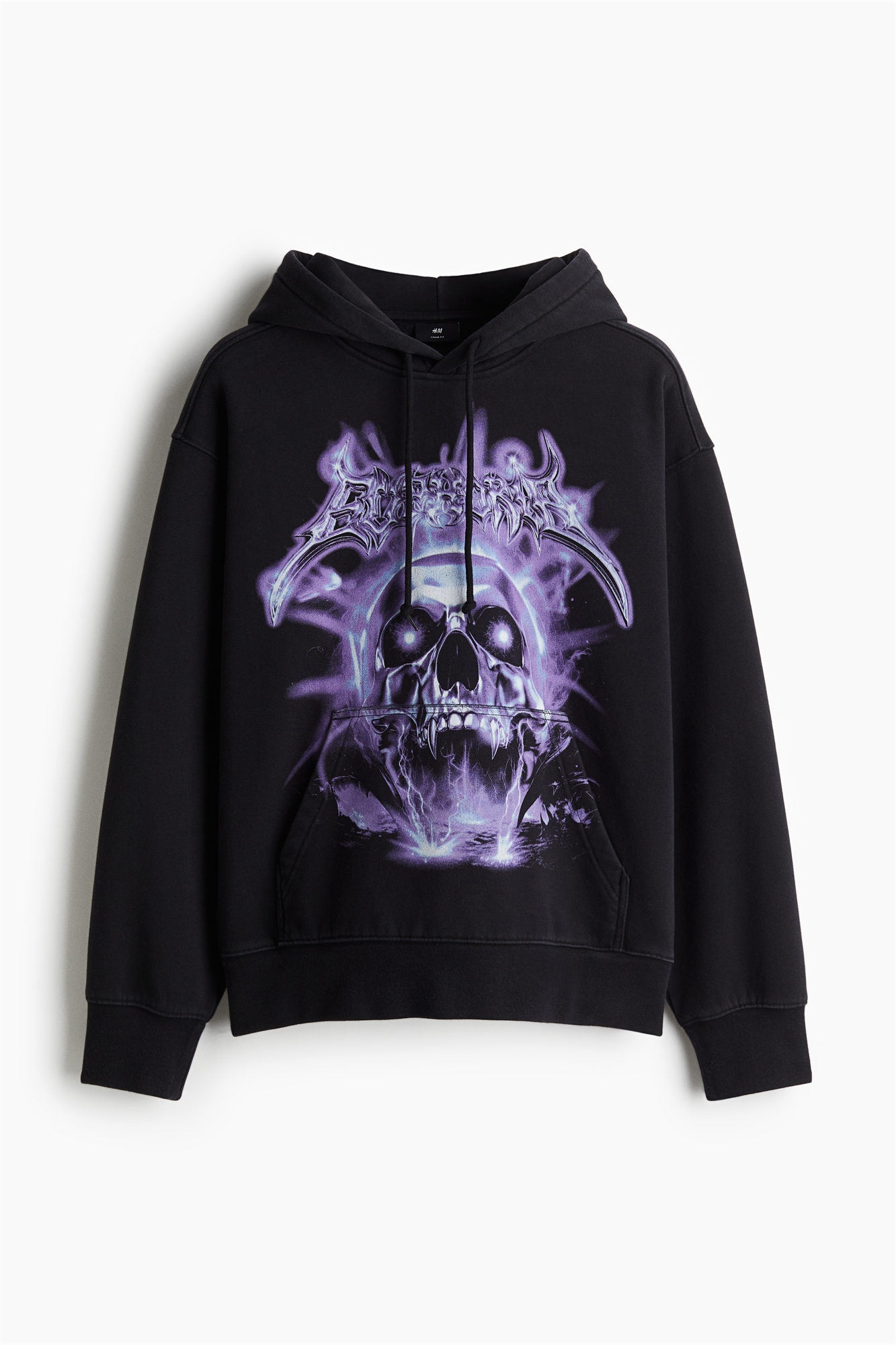 Толстовка с принтом из плотной хлопковой ткани с мягкой начесом внутри. Двухслойный капюшон с завязками, спущенные плечи и длинные рукава. Карман-кенгуру, манжеты и подол в рубчик. Свободный крой для пышного, но не чрезмерно большого силуэта.