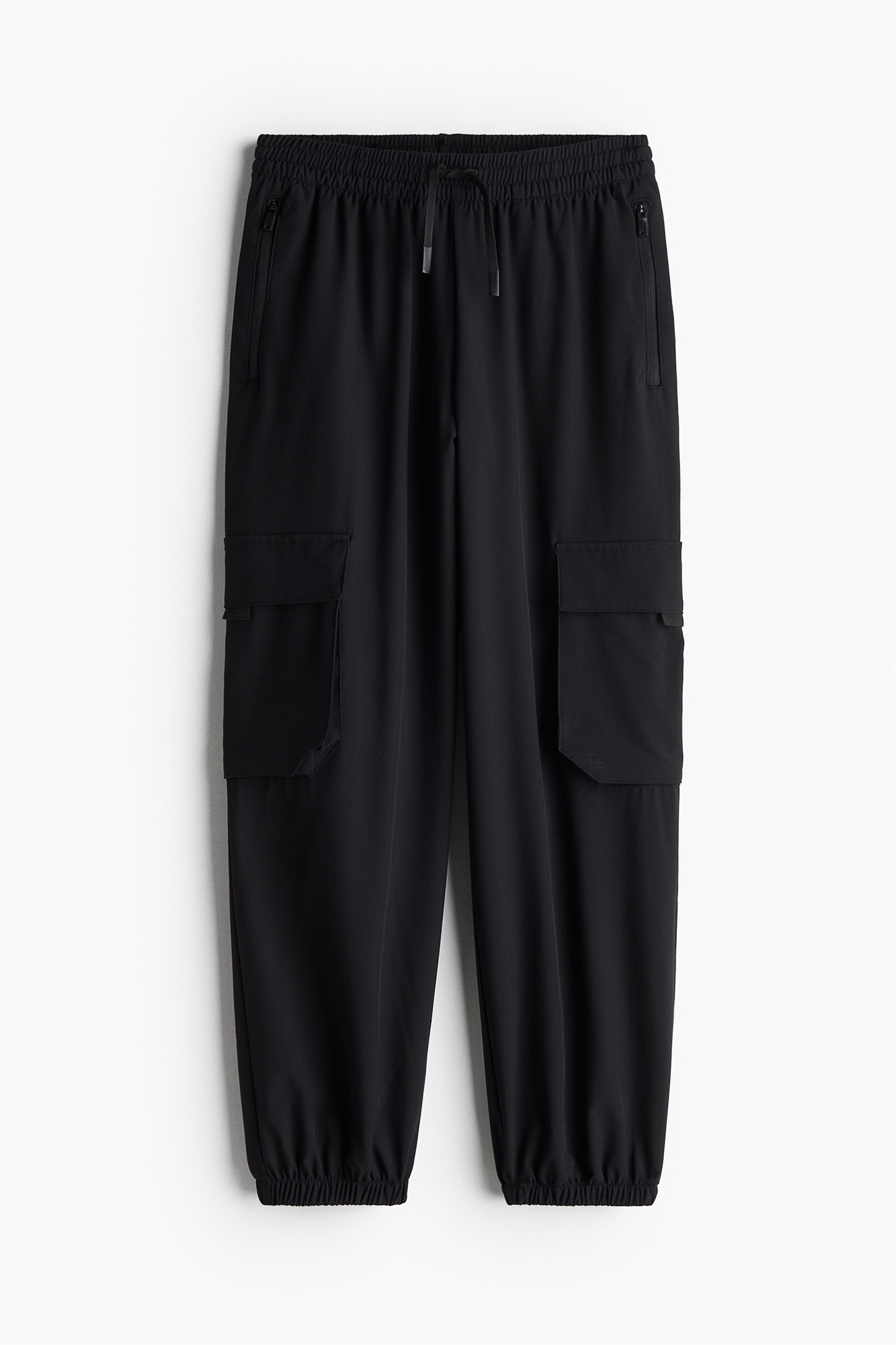 Спортивные джоггеры-карго из функциональной ткани с добавлением DryMove™, которая отводит влагу от кожи, обеспечивая комфортную сухость во время движения. Регулярный крой с эластичным утягивающим поясом, боковыми карманами на молнии и накладными карманами на ногах с застежкой на крючок и петлю. Зауженные ноги с эластичными вставками по краям. Джоггеры выполнены с четырехсторонней растяжкой для максимального комфорта и подвижности.