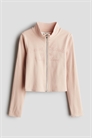 Короткий топ из мягкого трикотажа с воротником-стойкой, длинными рукавами и застежкой-молнией спереди.