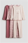 Пижама из мягкого хлопкового джерси с оверлочными краями. Верхняя часть с круглым вырезом и длинными рукавами. Нижняя часть с эластичной резинкой на талии.