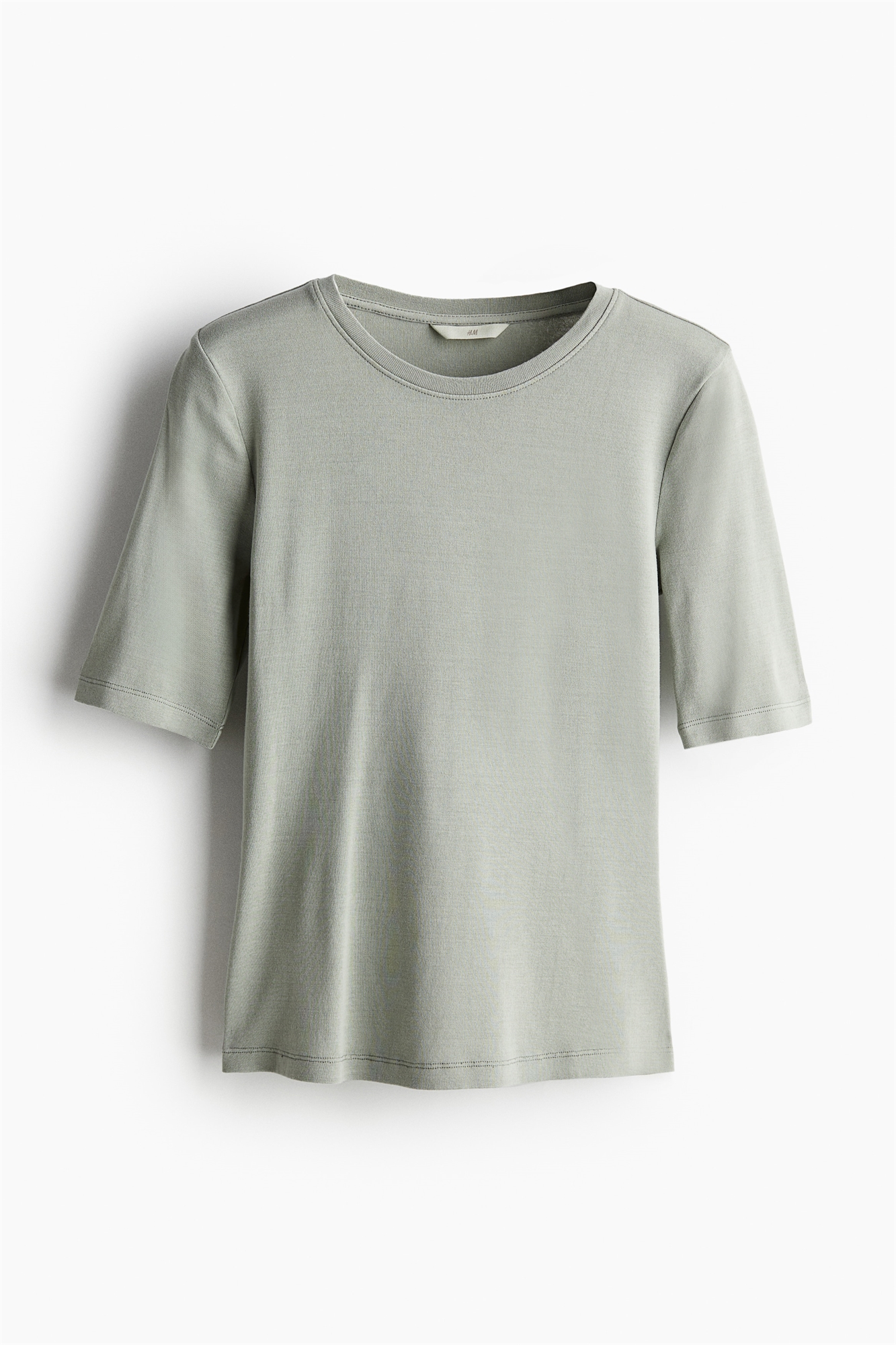 Топ из мягкого хлопкового джерси с круглым вырезом в рубчик и короткими рукавами.