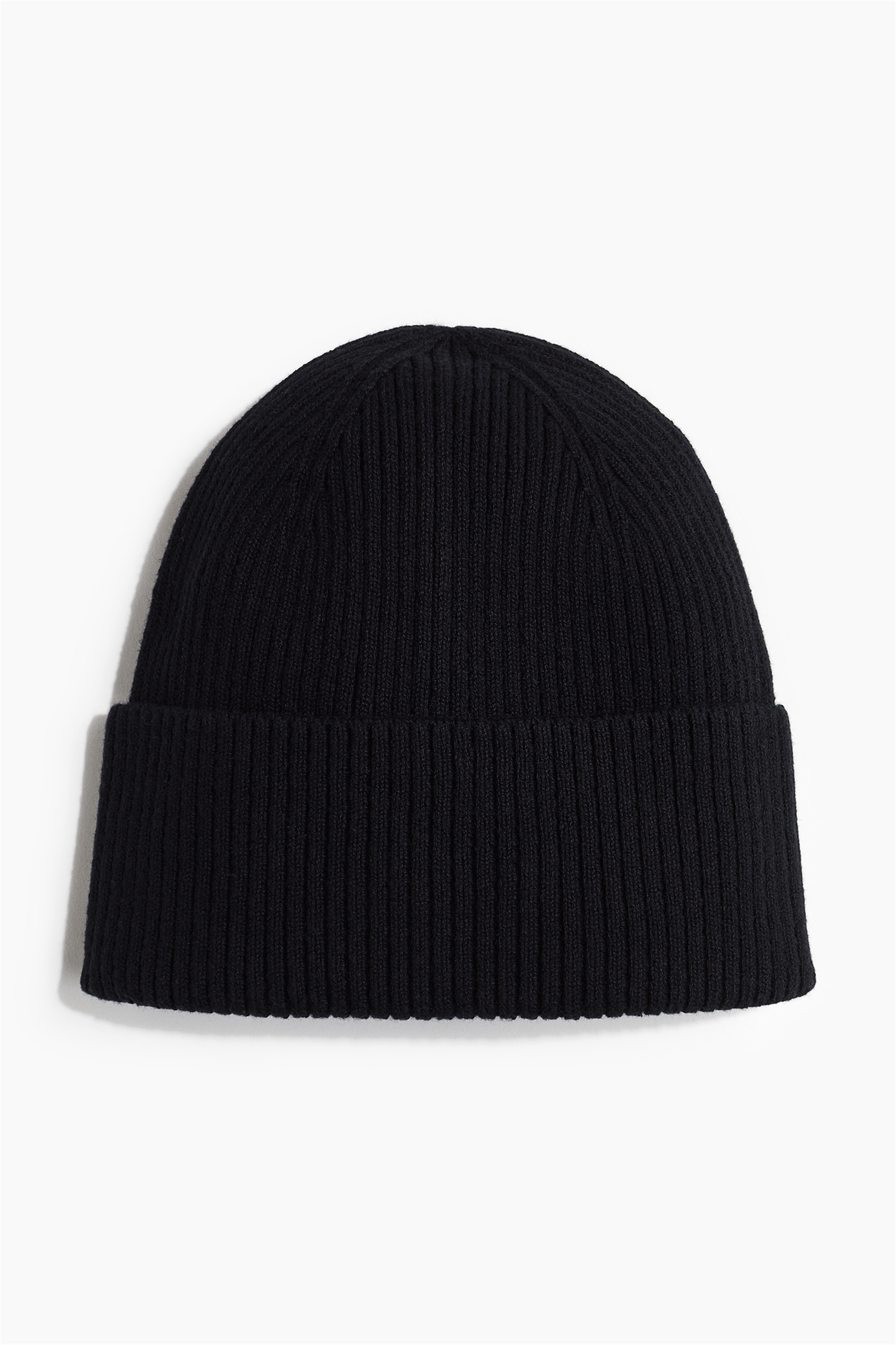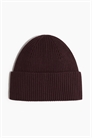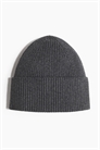 Шапка из мягкого хлопкового трикотажа в рубчик с широким выворотом на подоле.