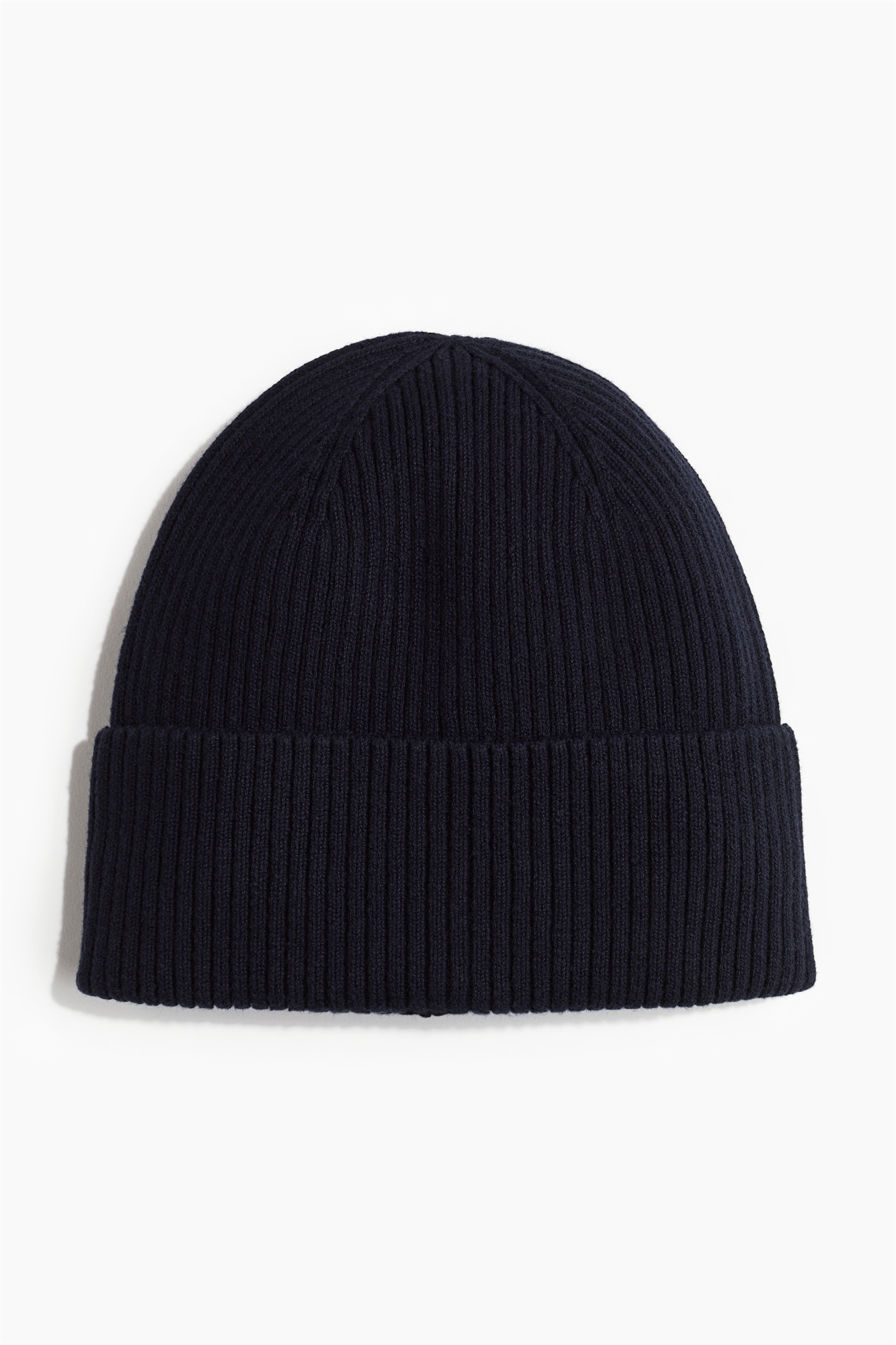 Шапка из мягкого хлопкового трикотажа в рубчик с широким выворотом на подоле.