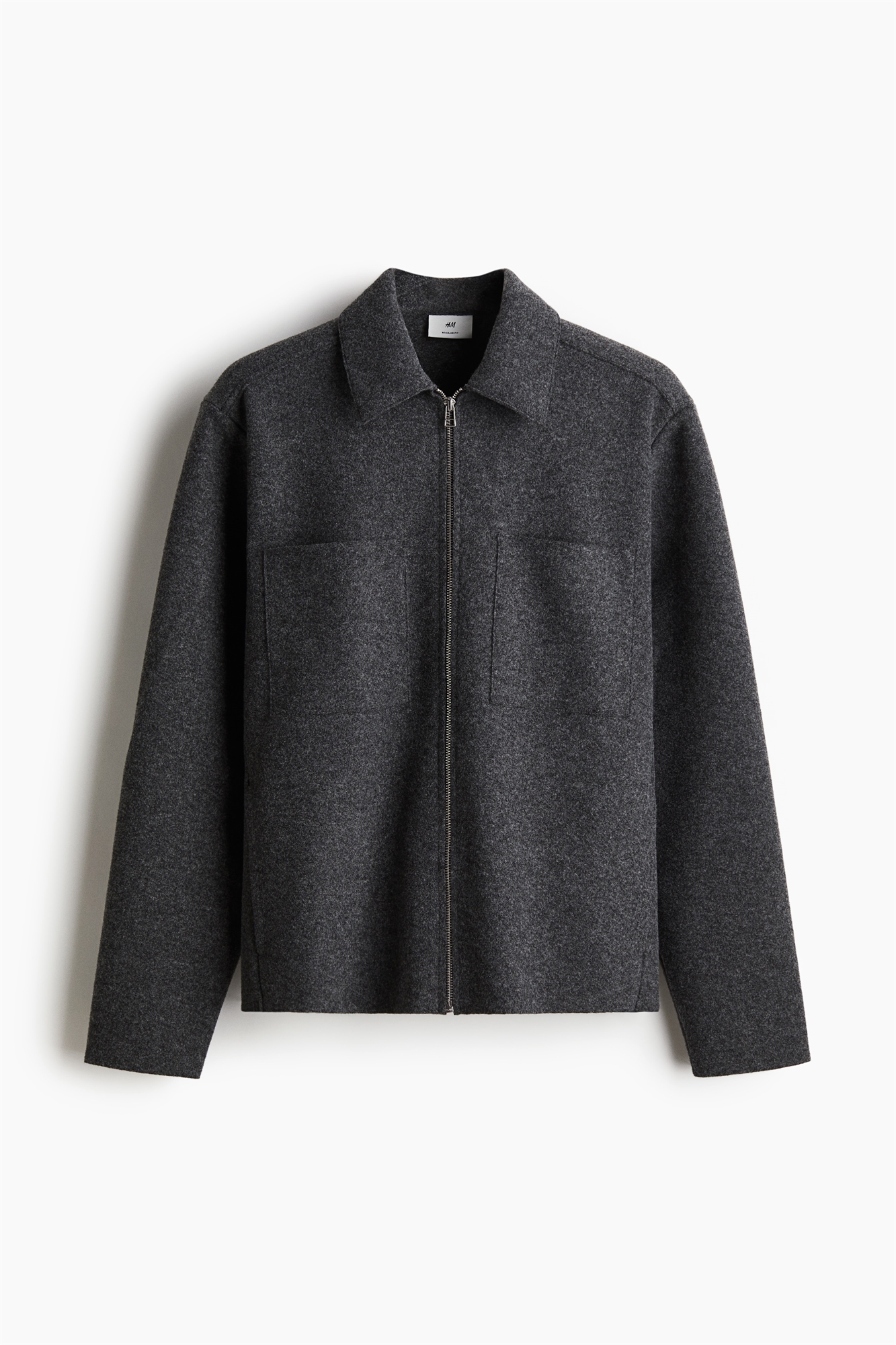 Куртка из войлочной ткани с содержанием шерсти. Модель с отложным воротником, застежкой-молнией спереди, задним ярмом и открытыми нагрудными карманами. Регулярный крой для комфортной посадки и классического силуэта.
