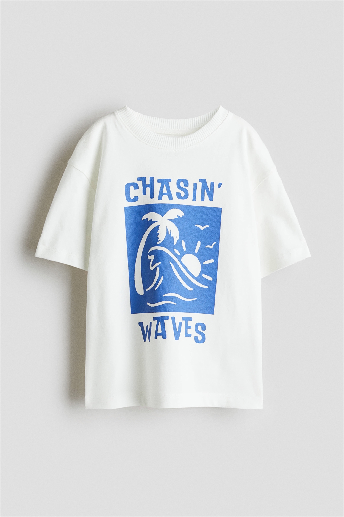 Свободная футболка из мягкого хлопкового джерси с принтом. Круглый вырез с ребристой отделкой и спущенные плечи.