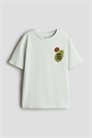 Свободная футболка из мягкого хлопкового джерси с принтом. Круглый вырез с ребристой отделкой и спущенные плечи.