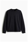 Свитшот из плотной хлопковой ткани - футер с эффектом washed look. Круглый вырез, спущенные плечи и длинные рукава. Ребристая отделка по вырезу, манжетам и подолу. Свободный крой для пышного, но не чрезмерно большого силуэта.