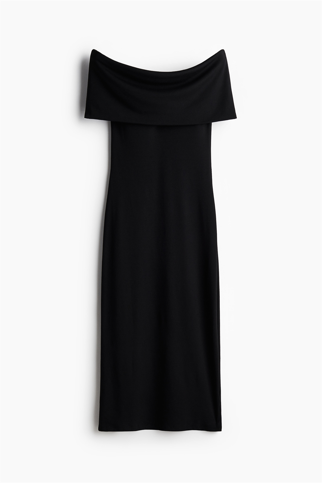 Приталенное платье без плеч из джерси длиной до колен с широкой складкой в верхней части.