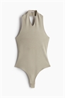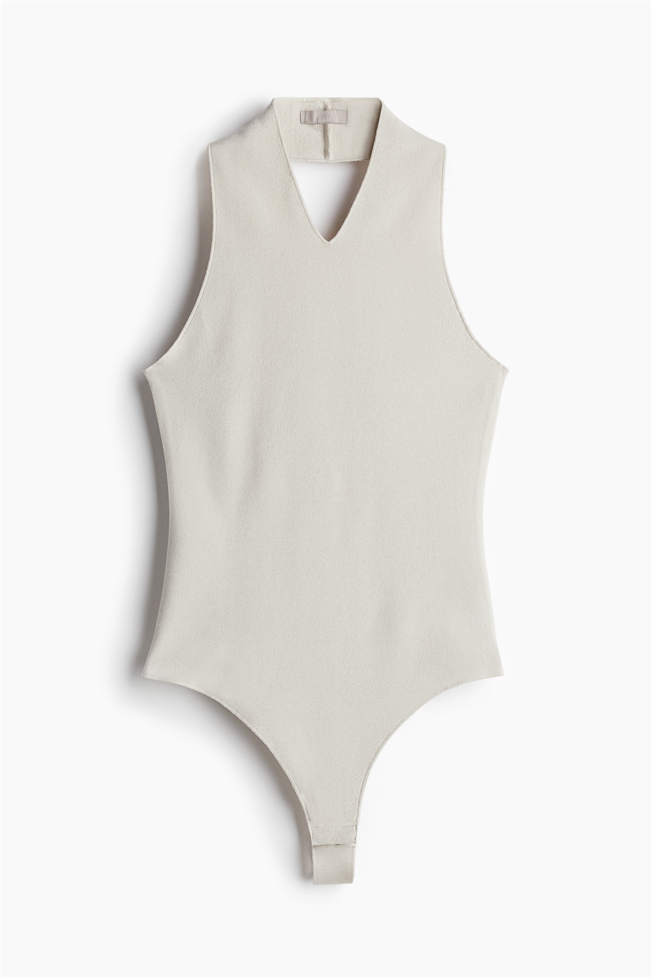 Боди стринги из плотного джерси с оверлочными краями. Узкий крой в верхней части, V-образный вырез и открытая спина с широкой бретелью. Скрытые кнопки в промежности.
