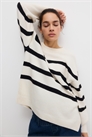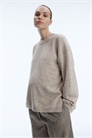 Джемпер из мягкого трикотажа с круглым вырезом, спущенными плечами и длинными рукавами. Прямой подол с разрезом с каждой стороны. Окантовка вокруг выреза, на манжетах и подоле.