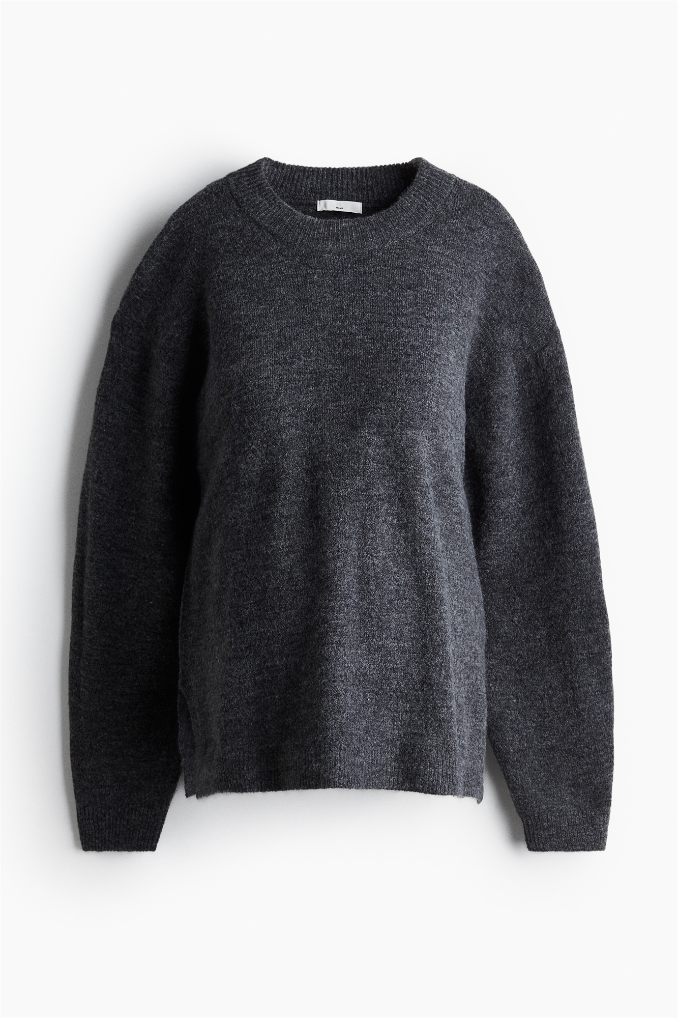 Джемпер из мягкого трикотажа с круглым вырезом, спущенными плечами и длинными рукавами. Прямой подол с разрезом с каждой стороны. Окантовка вокруг выреза, на манжетах и подоле.