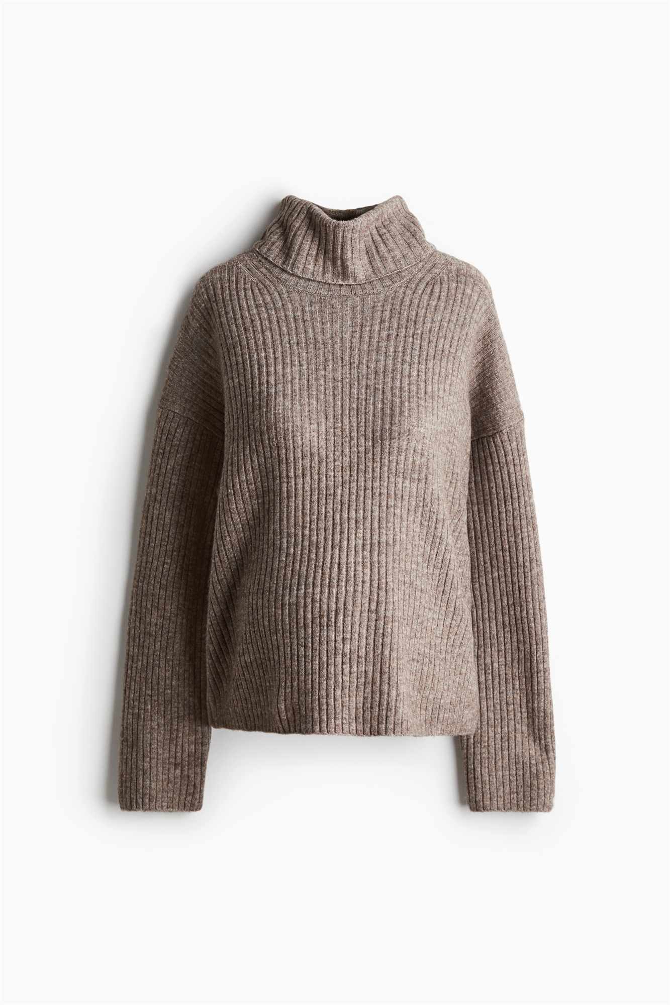Джемпер в стиле бокси из мягкого трикотажа в рубчик с горловиной поло, спущенными плечами и длинными рукавами.