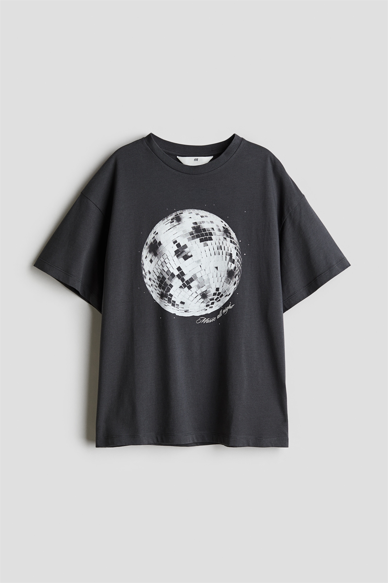 Футболка оверсайз из хлопкового джерси с принтом спереди. Круглый вырез с ребристой отделкой, спущенные плечи и прямой подол.