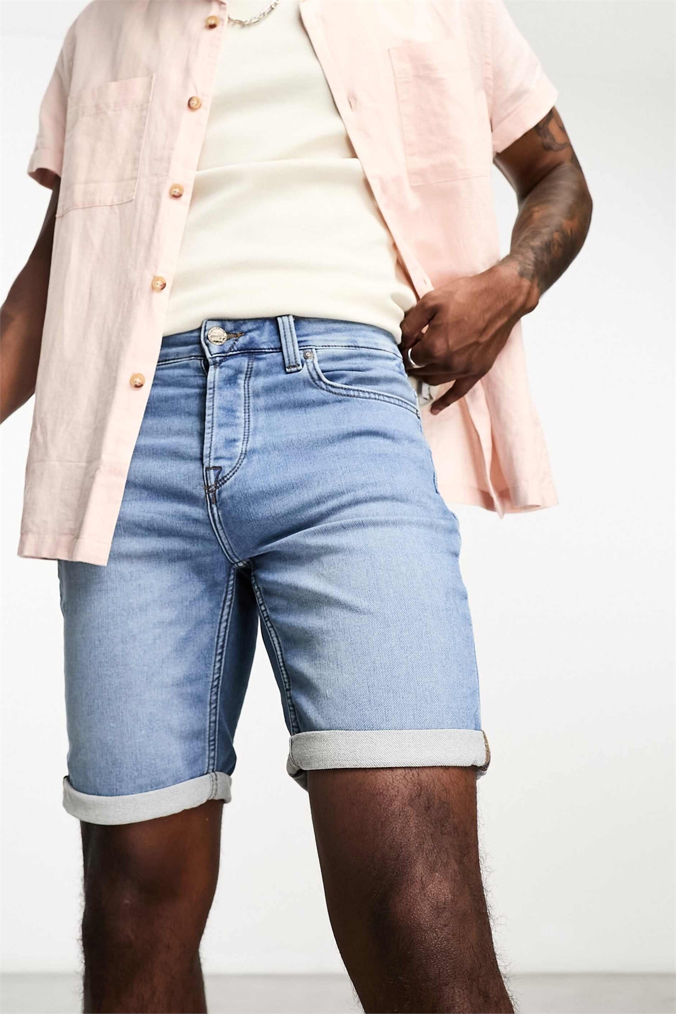 Джинсовая ткань с эластаном: оттенок средне-синий. Основной состав: 75% хлопок, 24% полиэстер, 1% эластан.