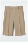 Эти длинные шорты - современная интерпретация классического пошива. Они изготовлены из тактильной саржи из шерстяной смеси и имеют свободный крой с поясом длиной до колена и четкими складками. Благодаря нашей фирменной застежке на пуговицах на внутренней стороне пояса вы можете отрегулировать посадку по фигуре. Носите с подходящим жилетом. Свободный крой Застежка на крючок и планку Лучшая альтернатива обычному полиэстеру: переработанный полиэстер изготавливается из отходов до и после утилизации Внешняя ткань: 57% переработанного полиэстера, 43% шерсти RWS. Внутренняя подкладка: 100 % полиэстер. Детали исключены/Сухая чистка Внутренняя длина ноги в размере ЕС 36 = 39,2 см/Модель носит размер ЕС 36