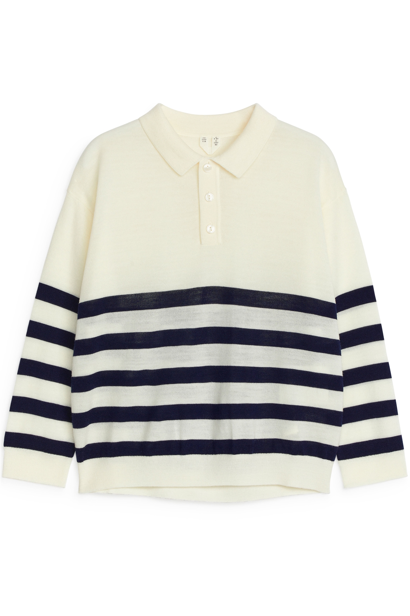 Вязаный джемпер-поло из шерсти. Джемпер с длинными рукавами, застежкой на пуговицы и ребристой отделкой. Расслабленный крой. Джемпер содержит 100% шерсти RWS (TE-00047206). Продукция, сертифицированная по стандарту ответственной шерсти (RWS), содержит шерстяное волокно с ферм, прошедших независимую сертификацию на соответствие требованиям по благополучию животных и землепользованию.