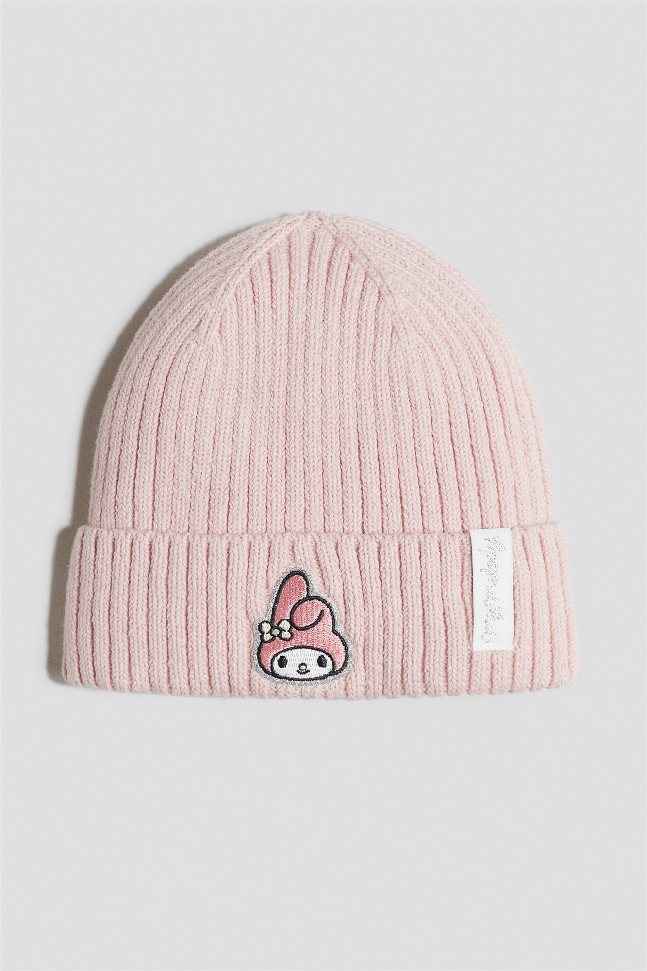 Бини из мягкого трикотажа в рубчик с мотивом спереди.