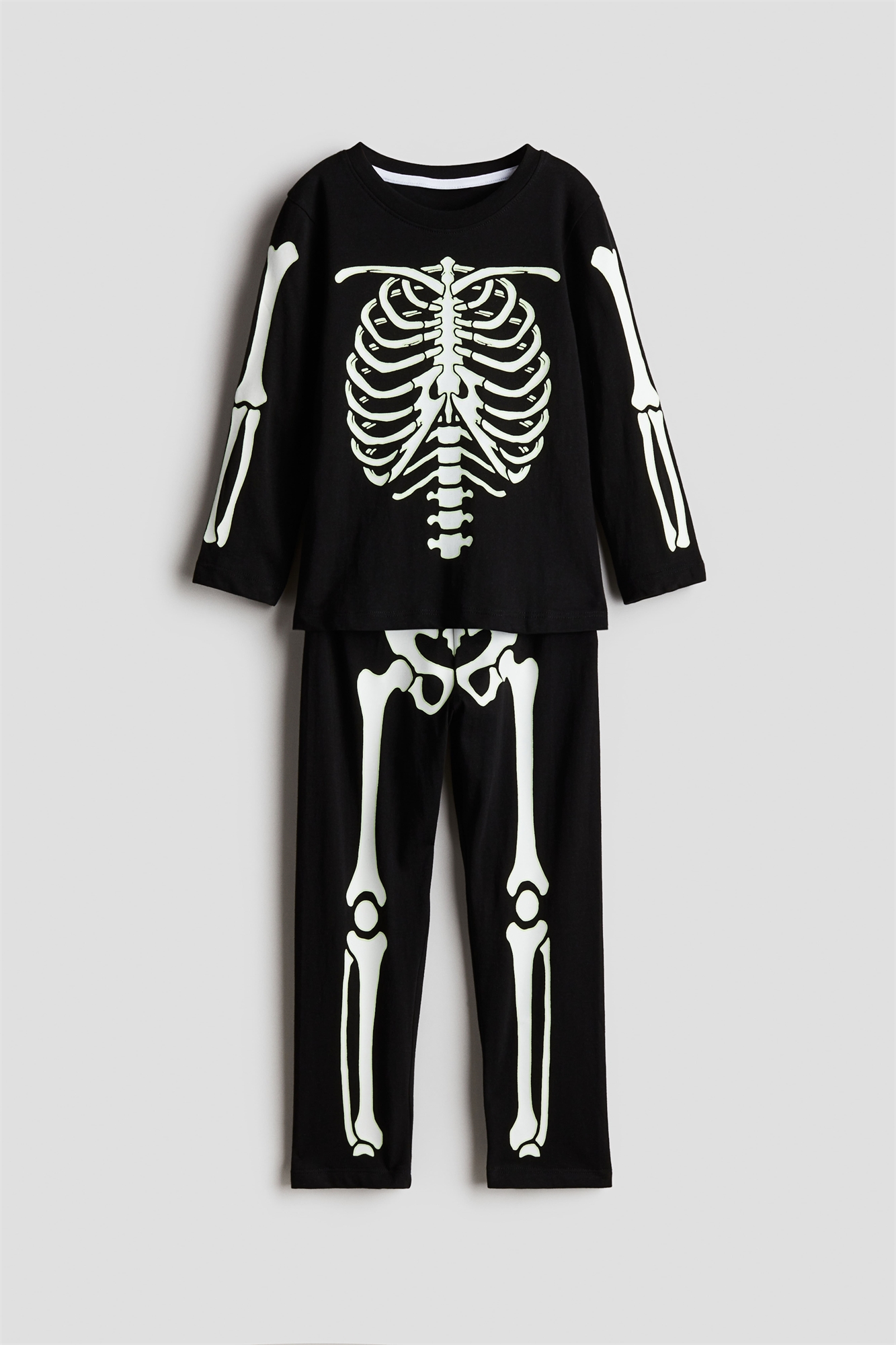 Пижама с верхом и низом из мягкого хлопкового джерси с принтом. Верхняя часть с круглым вырезом с ребристой отделкой и длинными рукавами. Нижняя часть с эластичным поясом на талии и длинными ногами.