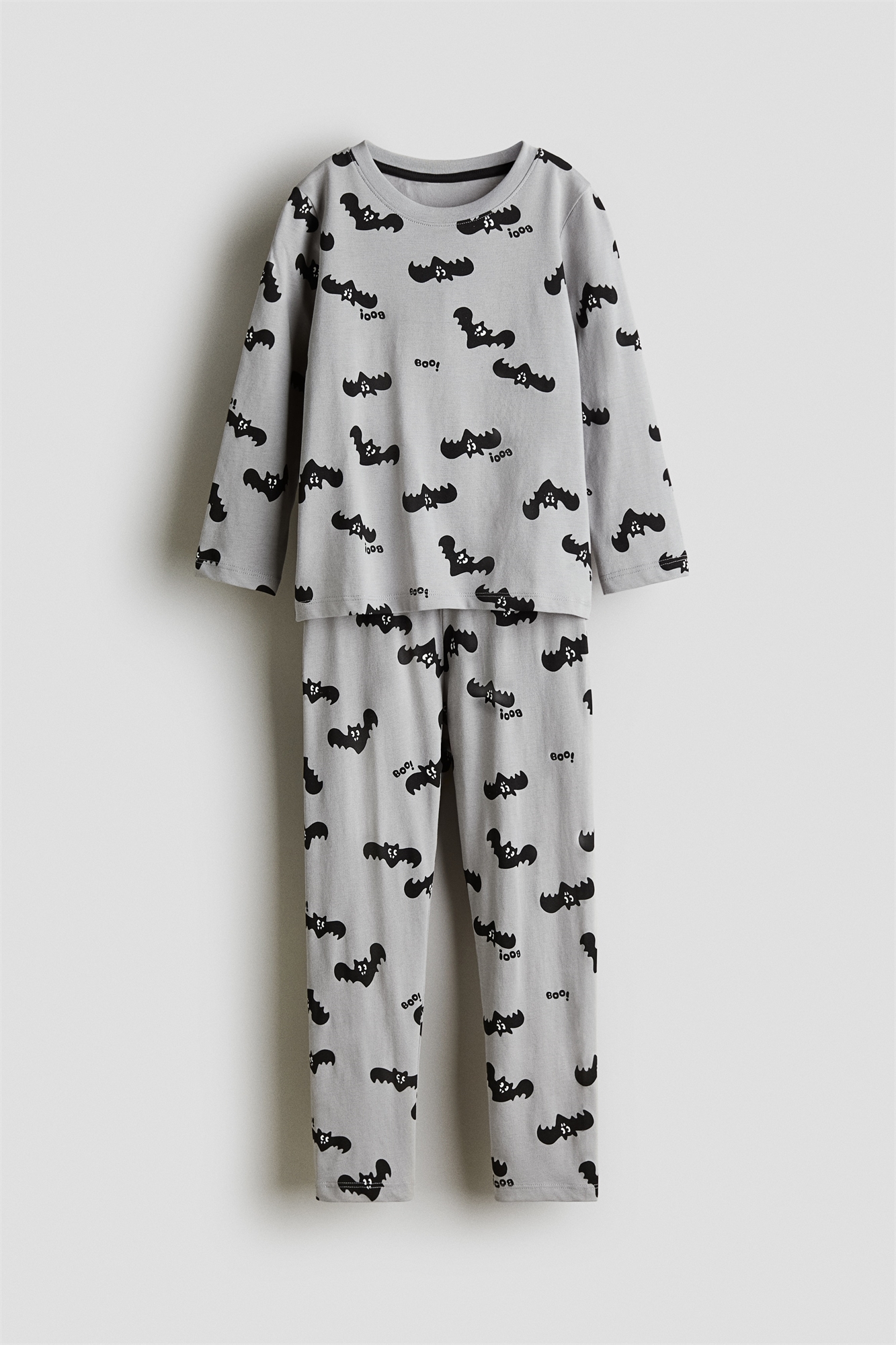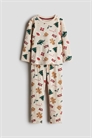 Пижама с верхом и низом из мягкого хлопкового джерси с принтом. Верхняя часть с круглым вырезом с ребристой отделкой и длинными рукавами. Нижняя часть с эластичным поясом на талии и длинными ногами.